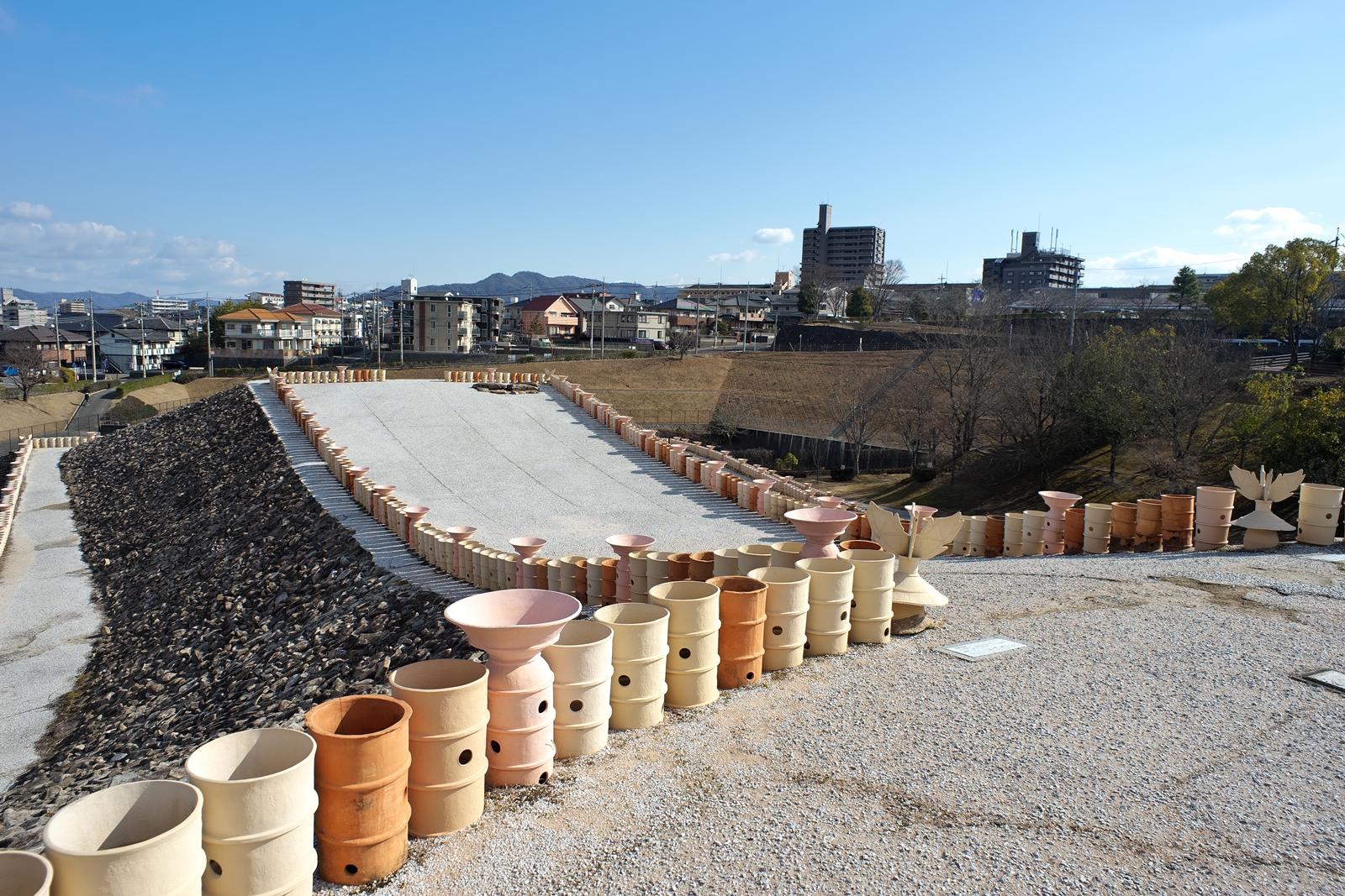 遥か、向こう側に若干、右に曲がりつつ土手に向かっているのでした。