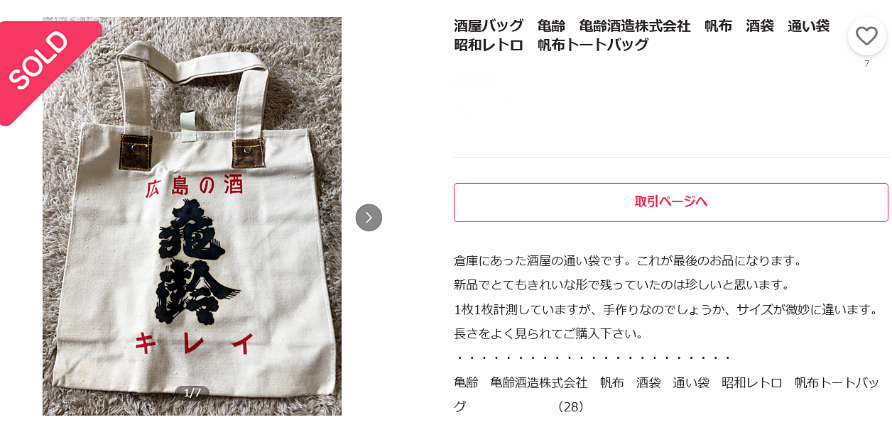 出品者は山口県内にお住いの方で、ご親戚がお酒屋さんを営んでいらしたとの事。古くからこの亀齢酒造さまとのお取引が有ったそうです。