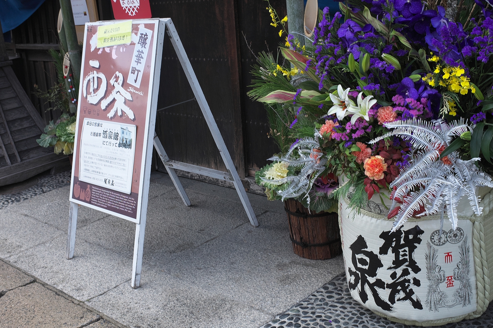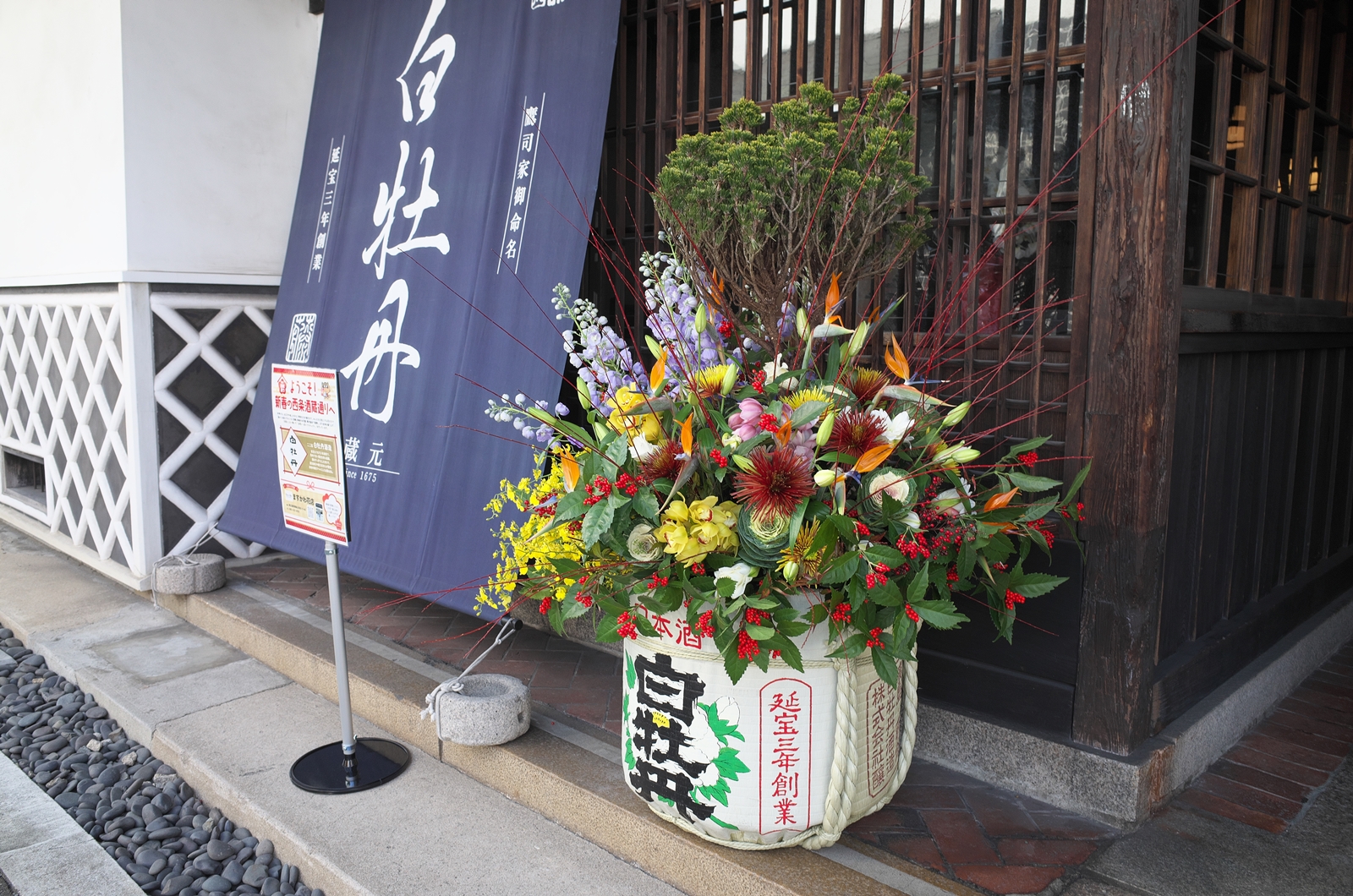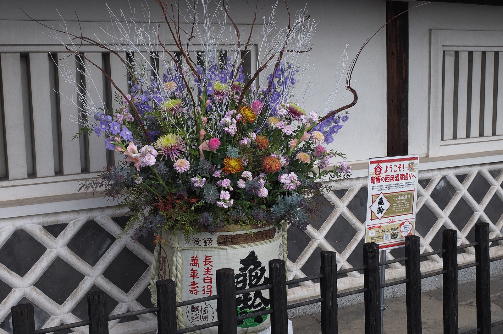 写真ですが、酒樽に飾り付けられた花以外はワンパターンのモノばかりですが、ご容赦下さいませ。m(__)m