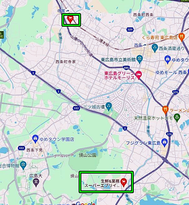 JA東広島の野菜売り場ですが、Googleの衛星画像には当時のままの姿が残っておりました。(*^-^*)