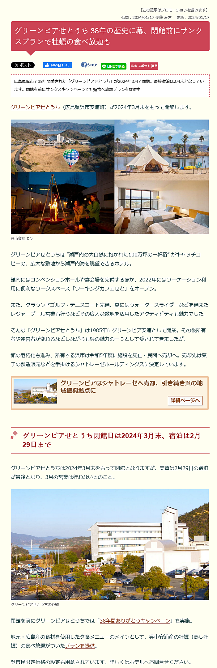 グリーンピアせとうちの後は、大手製菓業のシャトレーゼさまが新たな趣向で事業展開をなさる事と。