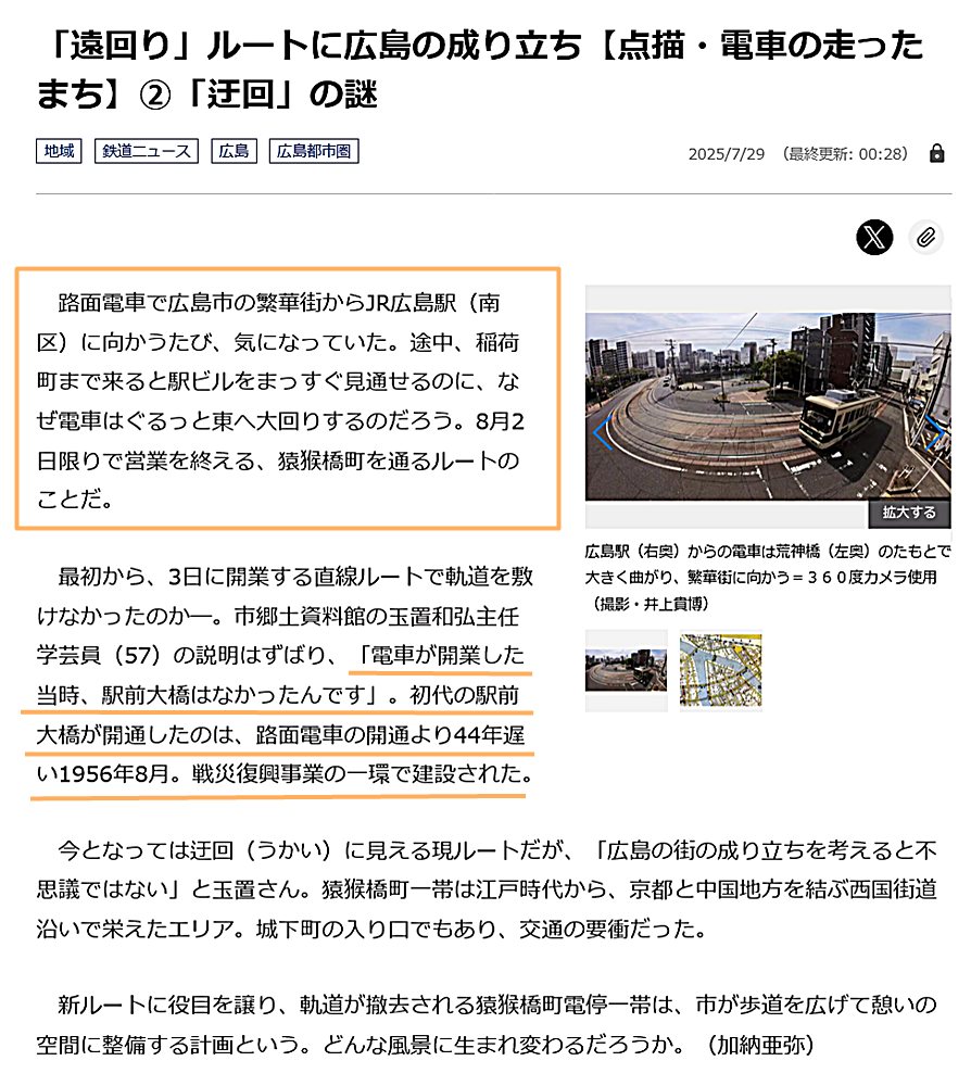 ちなみに、今回の開通に至るまでには沢山の方々のご努力のお蔭かと存じますが、椋田昌夫・広電会長さまのご英断も大きかったのではないでしょうか?
