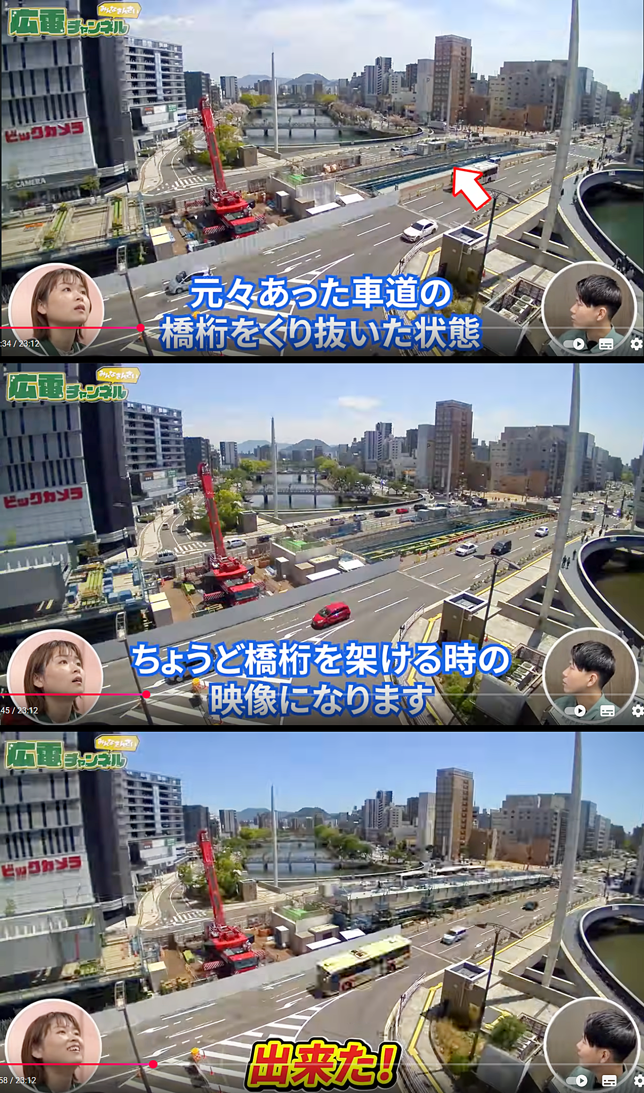 広電チャンネルに詳細な解説動画が有りまして、これまでの工事の推移を理解することが出来ました(*^-^*)・・・・一般の方々には不要なモノかと存じますが、お許しの程をm(__)m