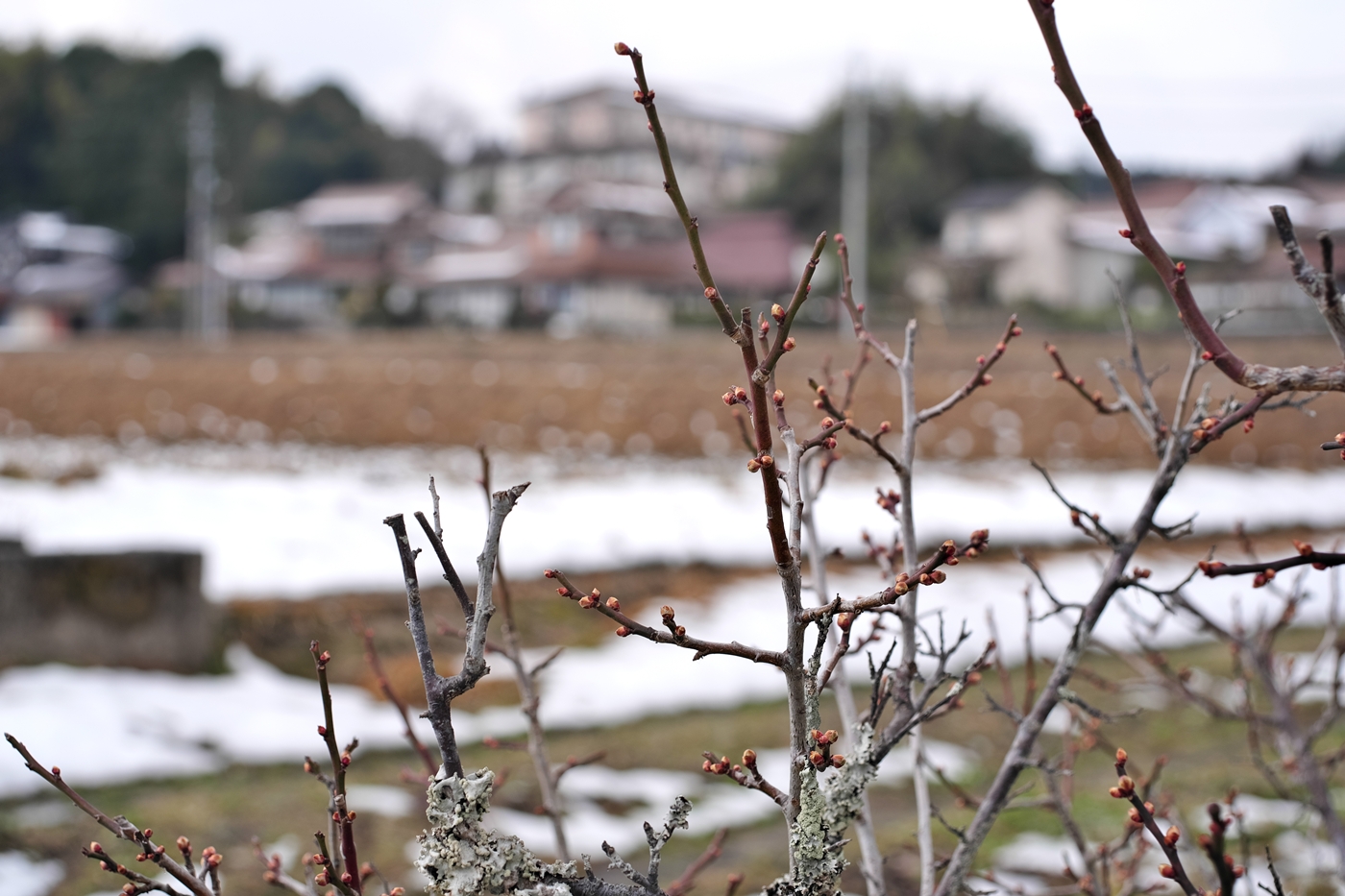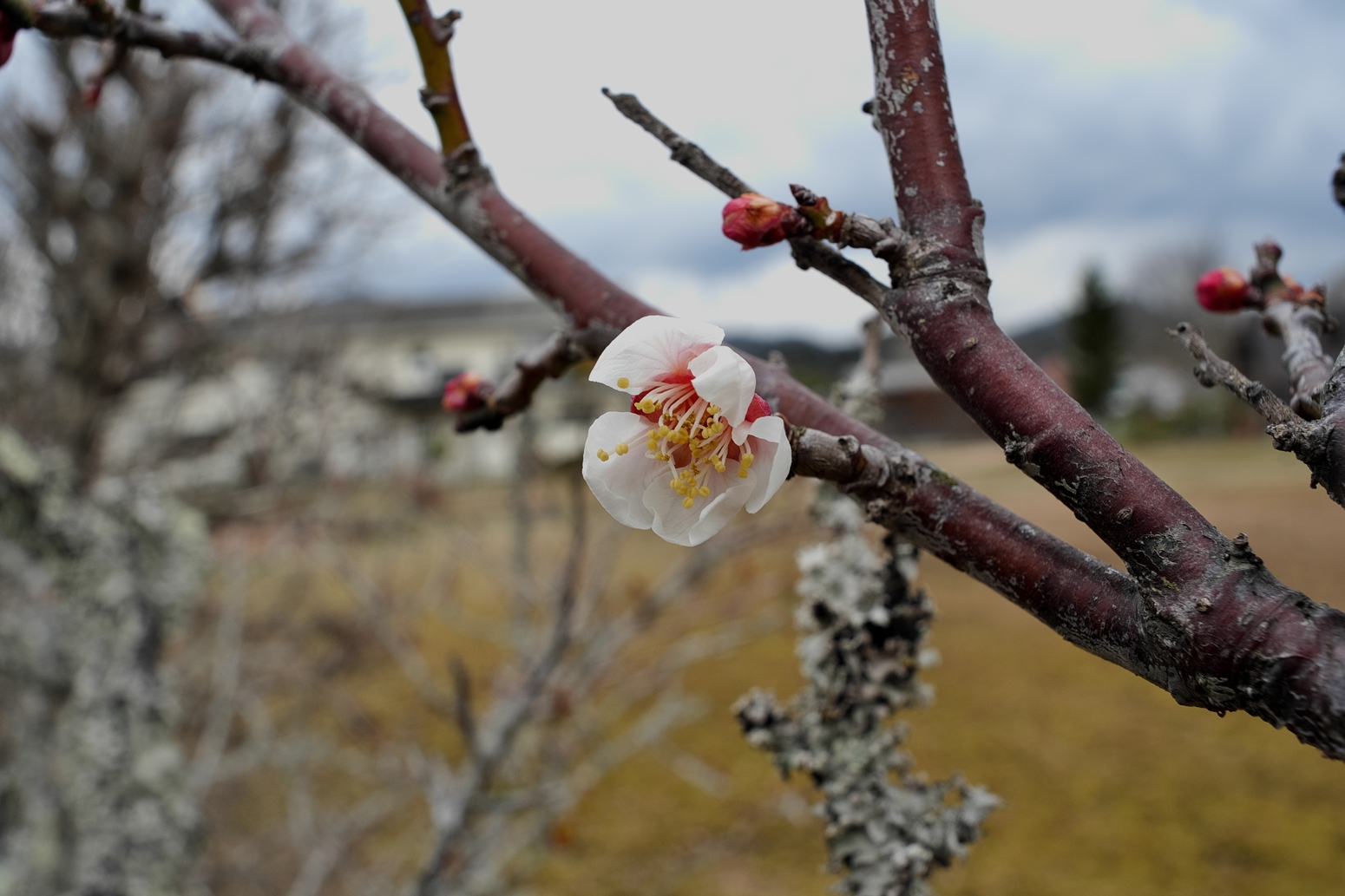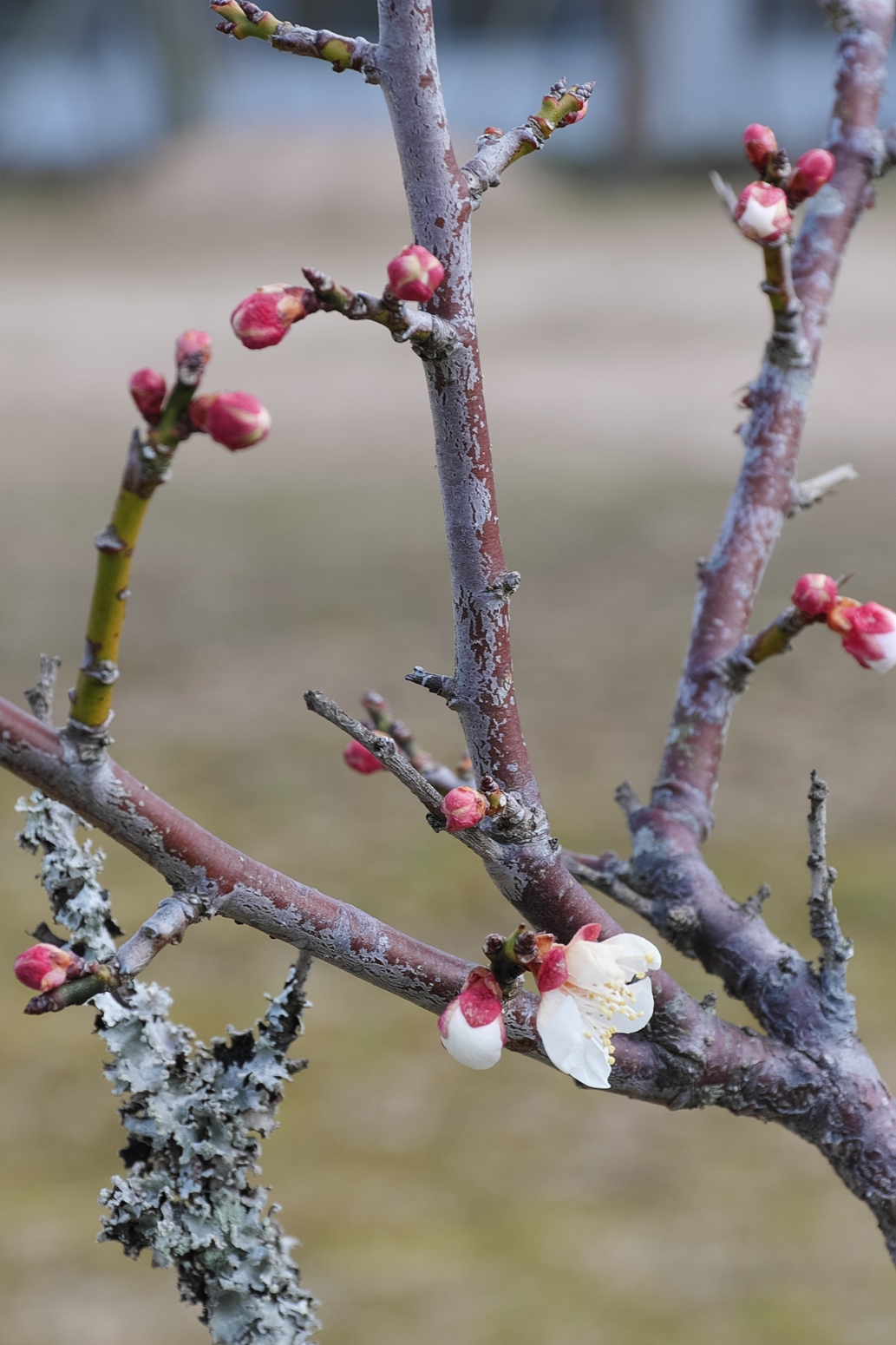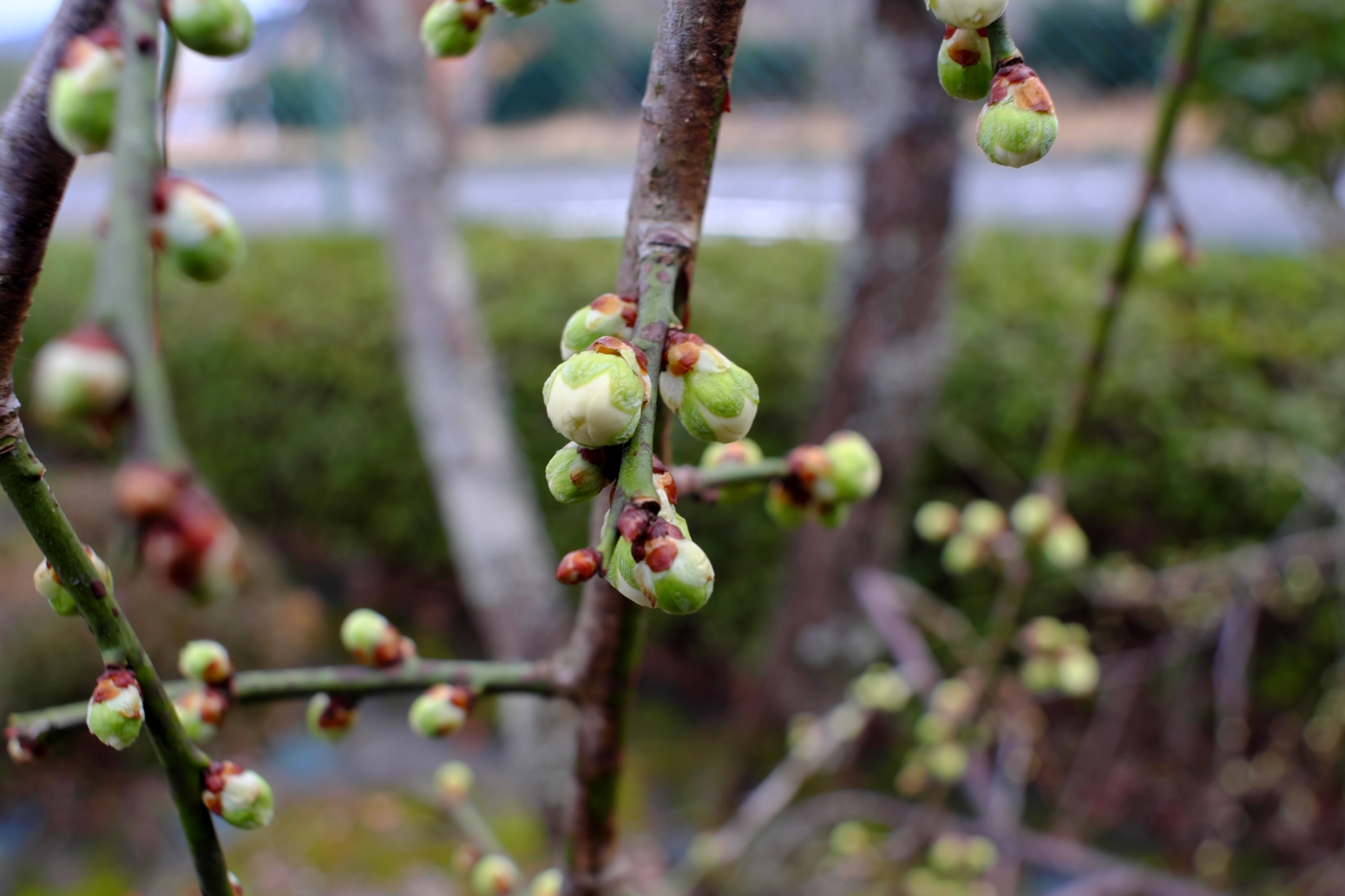 | 梅ですが(広島市内は満開?)当地で日当たりの良い場所で少しツボミが開きかけた状態に |