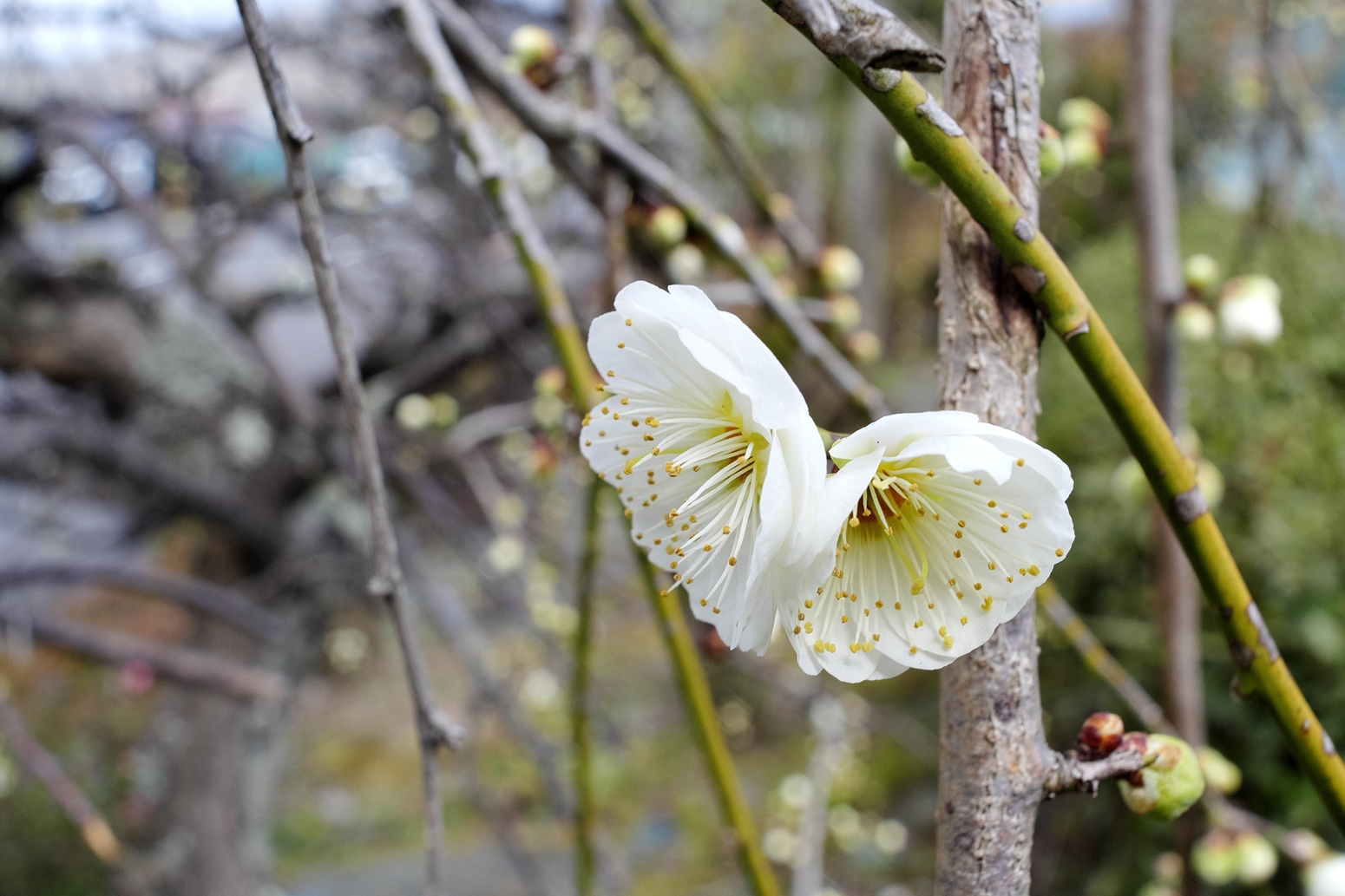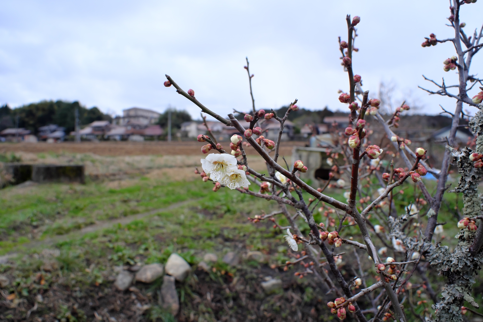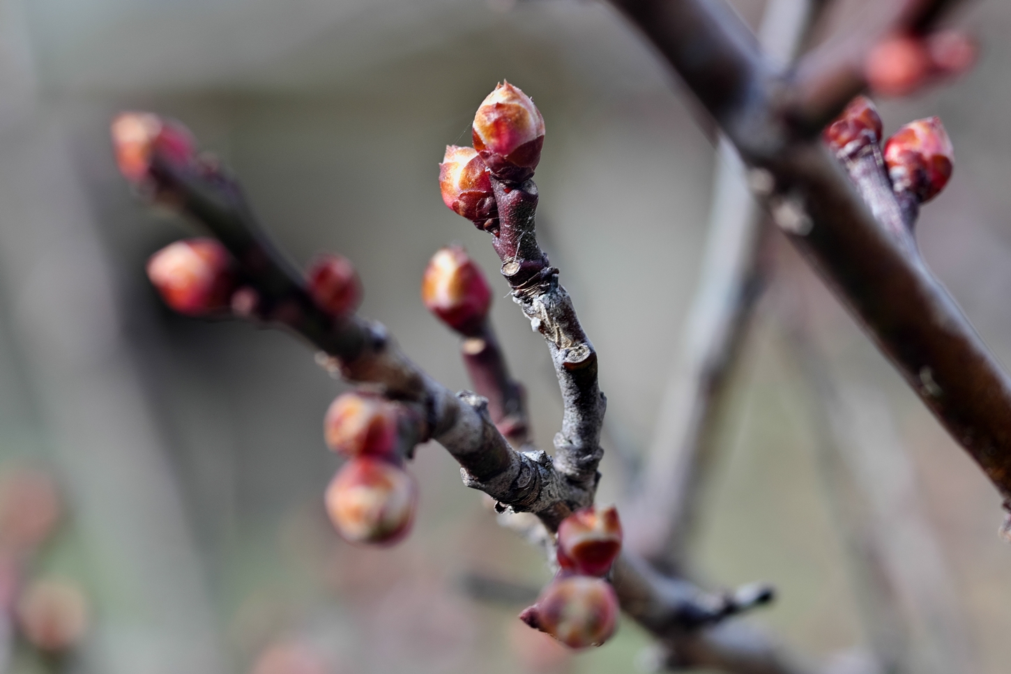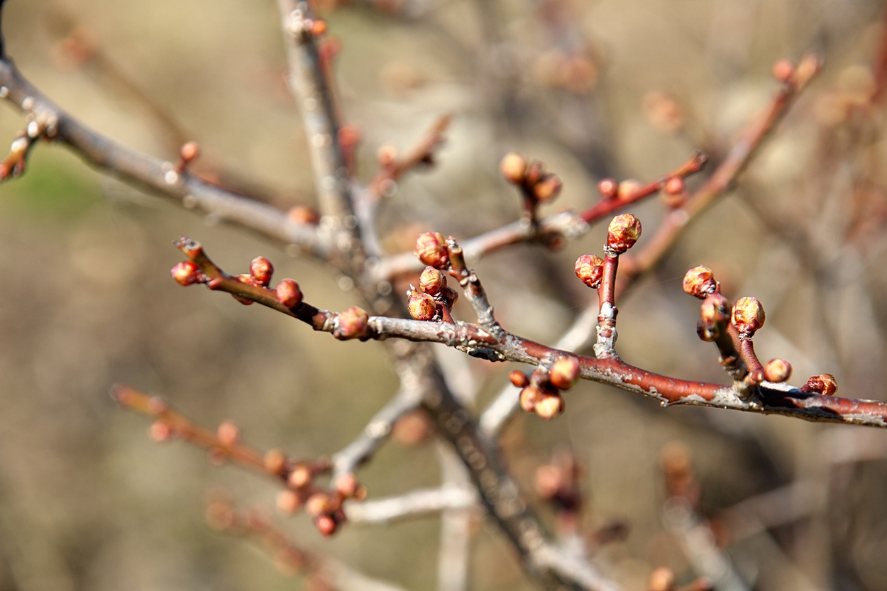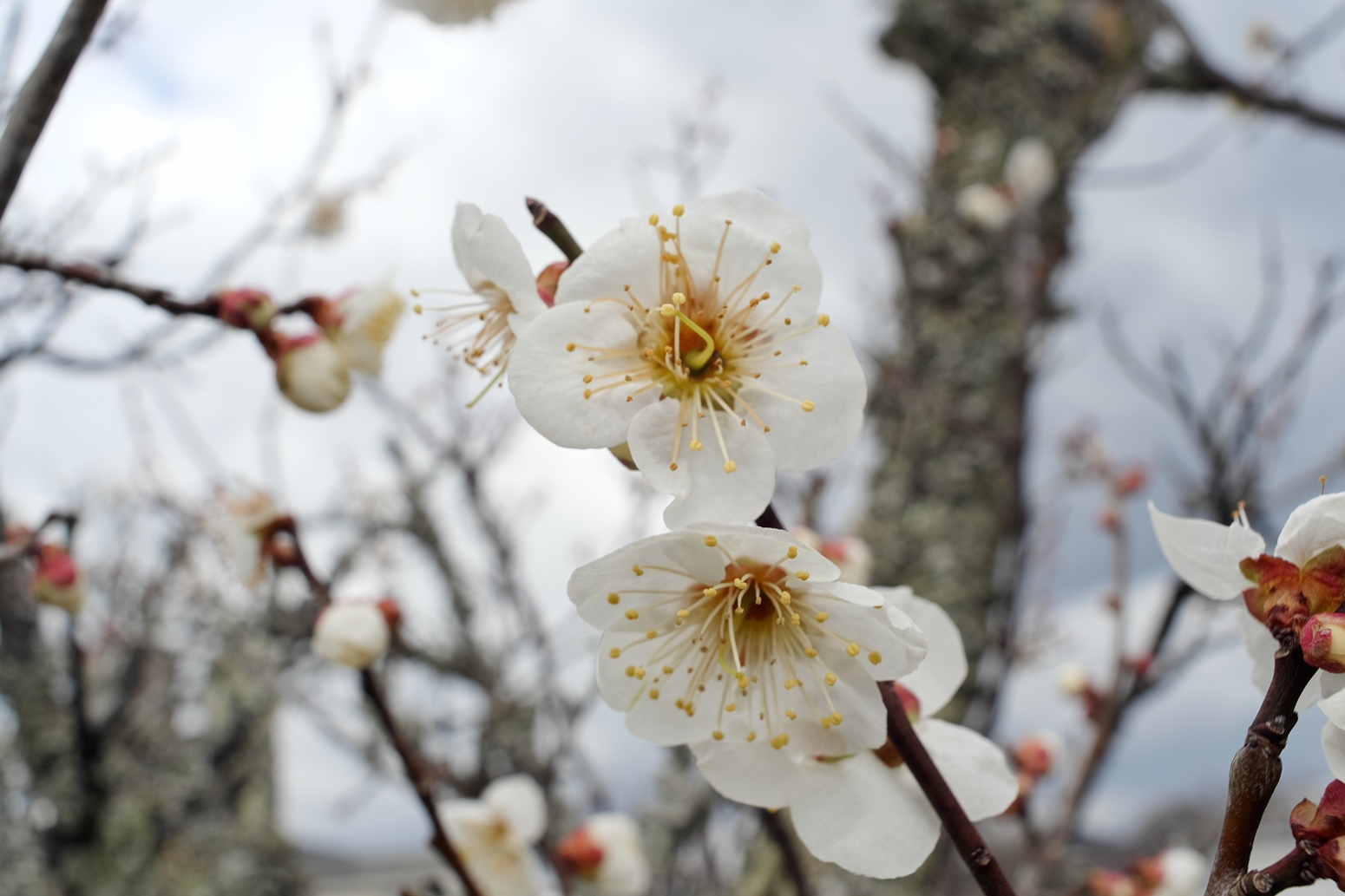 | 梅ですが(広島市内は満開?)当地で日当たりの良い場所で少しツボミが開きかけた状態に |