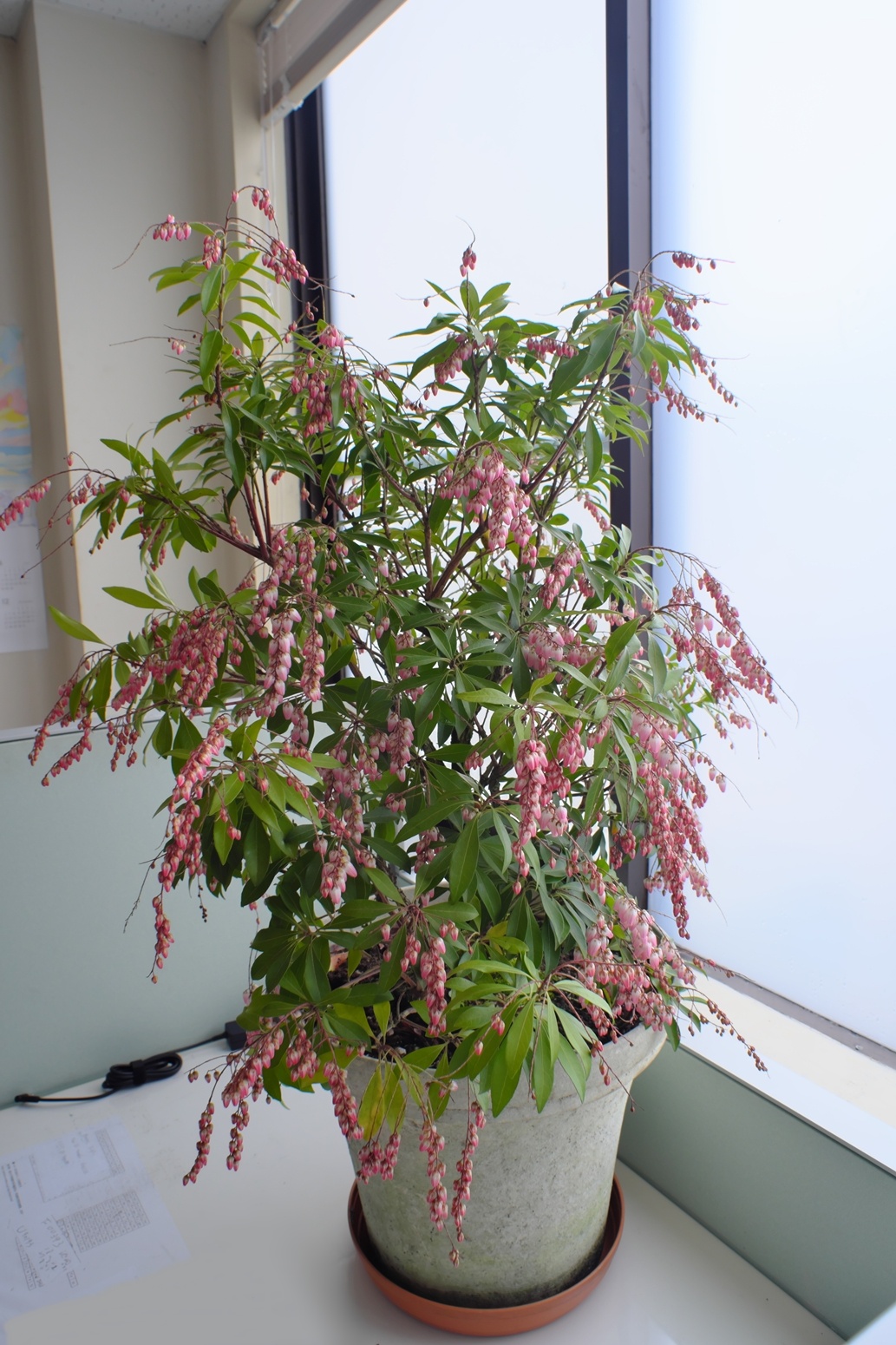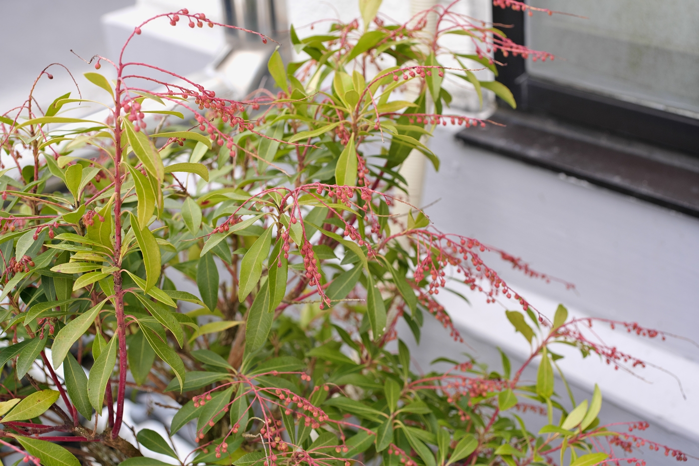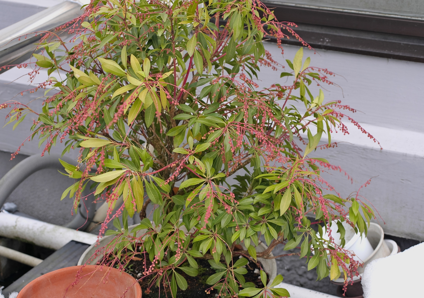 ベランダに置いていたアセビを鉢ごと、屋内に持ち込んで来ました(*^-^*)