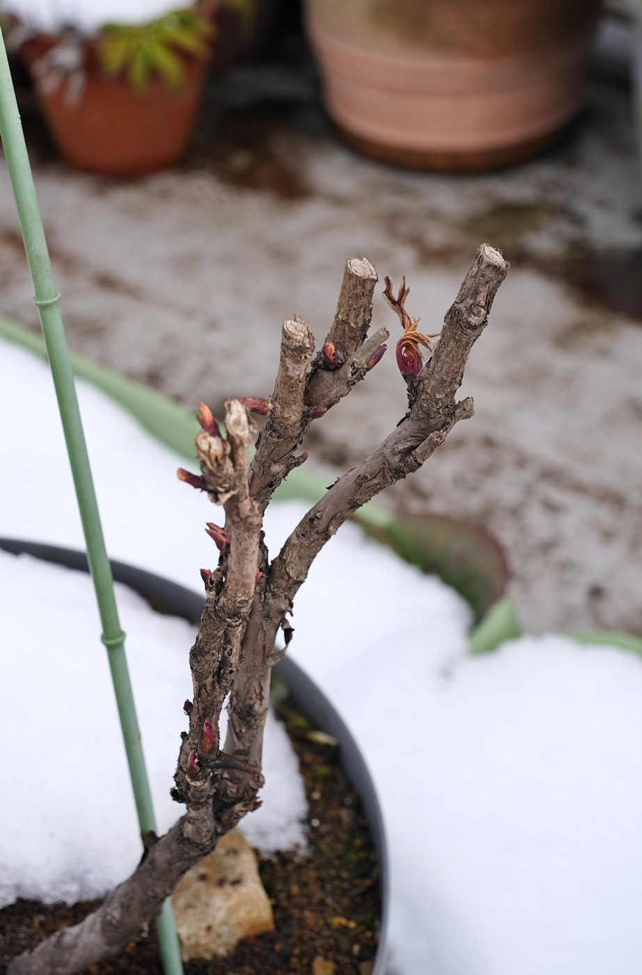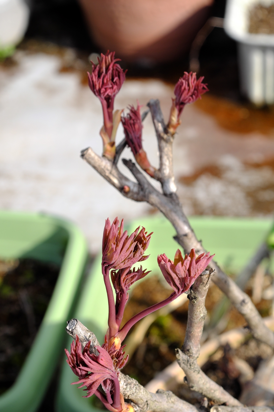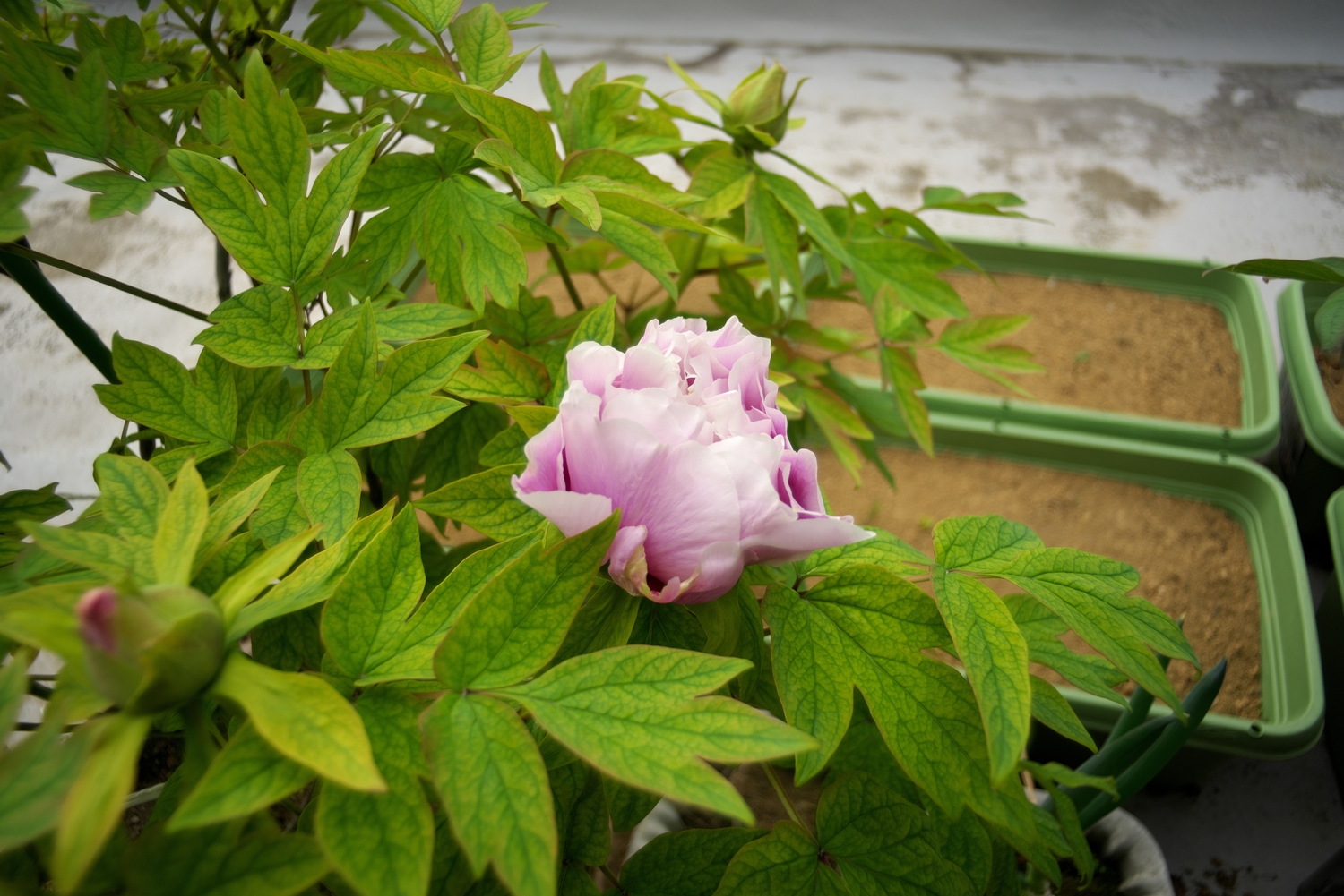 2鉢の牡丹ですが、薄紫の方の花が満開になったようです。(*^-^*)