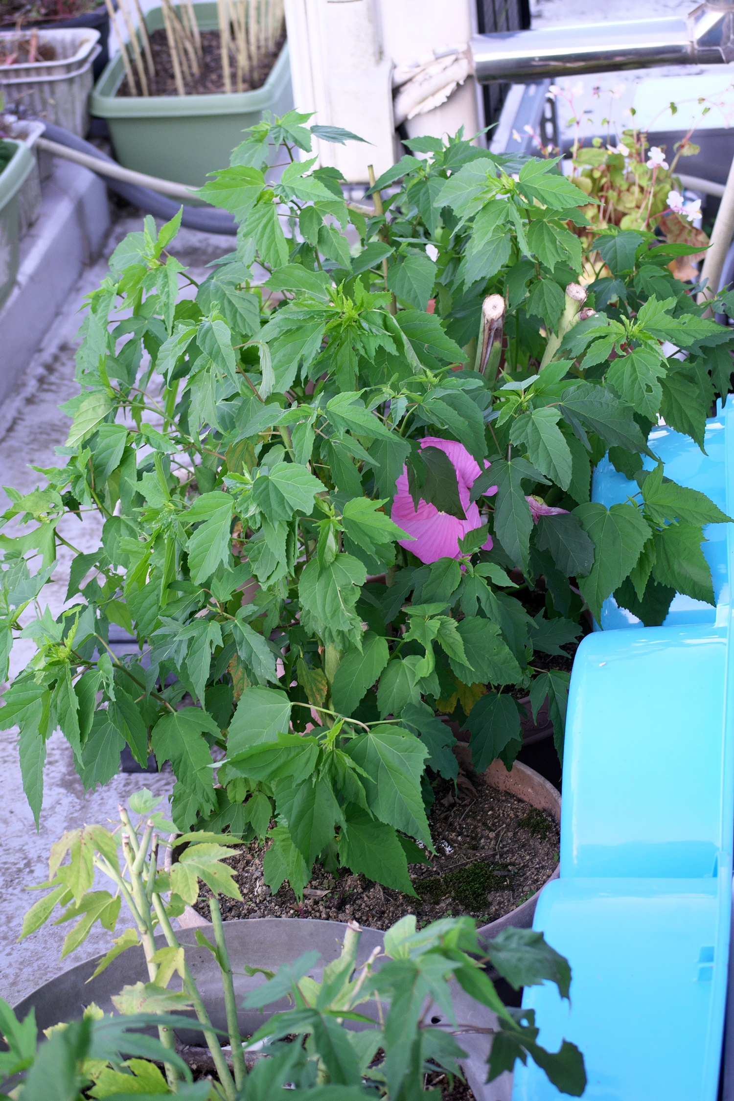 程々な時期を見計らって、一気に(ツボミを付けた)枝を切り落として”水遣りの強制終了”を考えています。タイタンビカスには申し訳ない事ですが・・・・