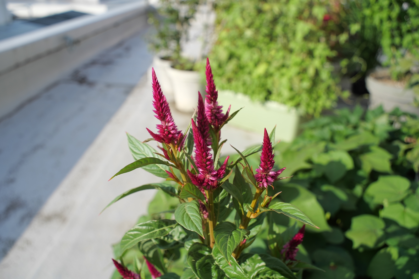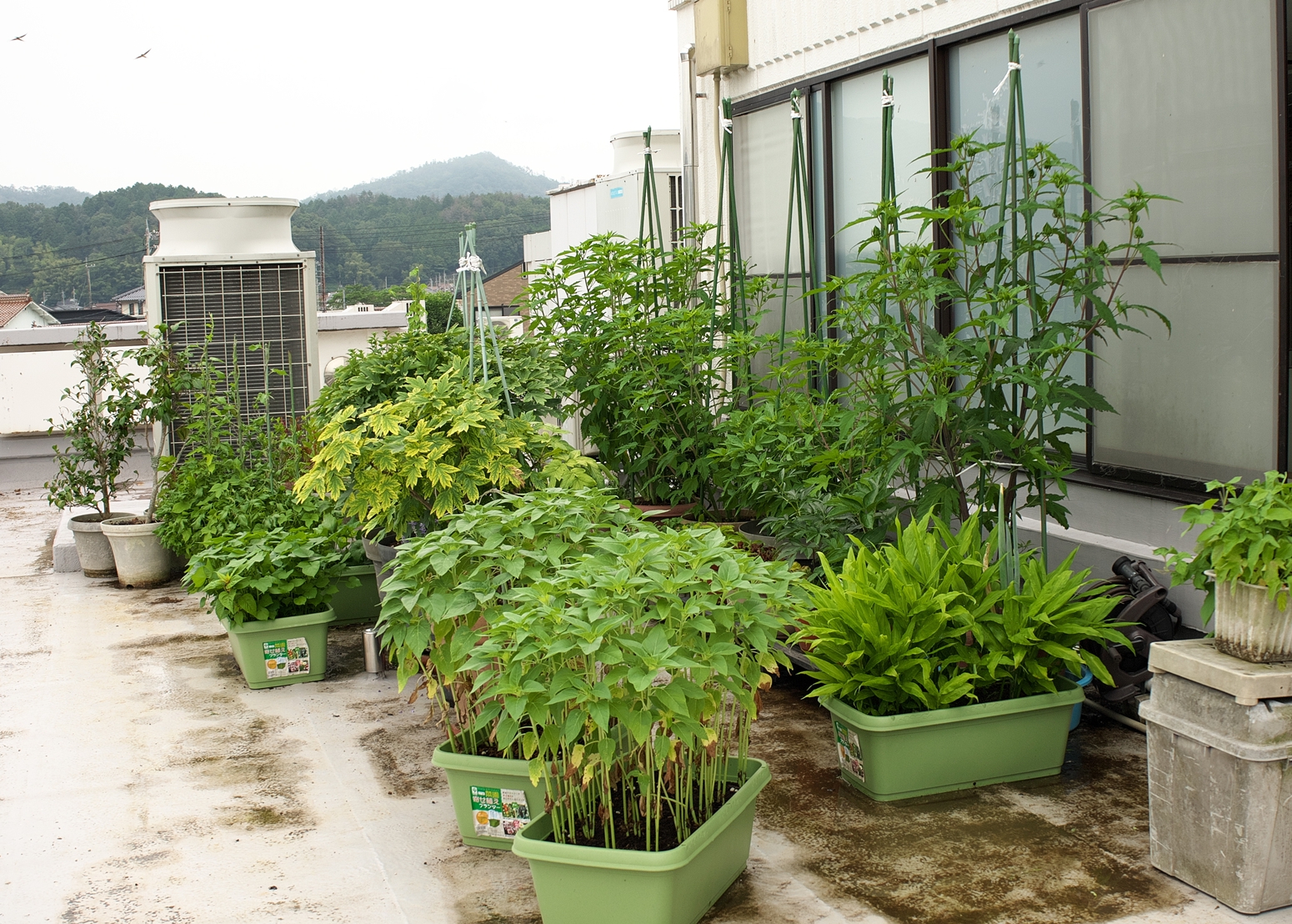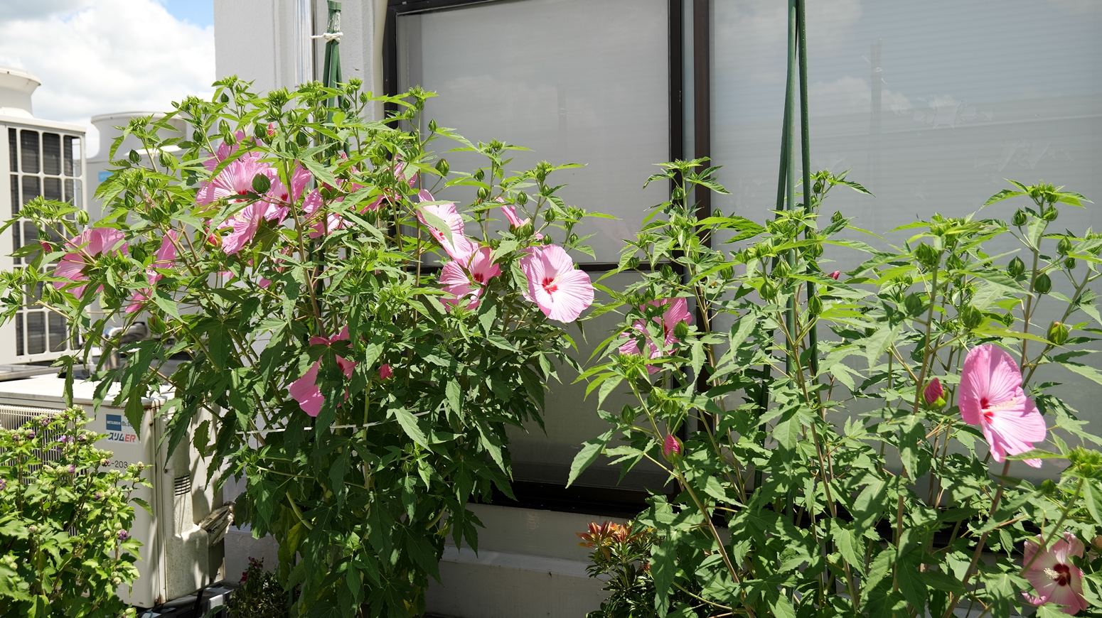 職場ベランダですが、東西方向の建物に接した場所ですので、太陽光が直接当たるのはお昼前からです💦