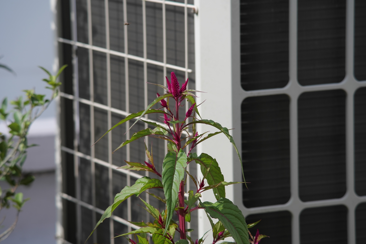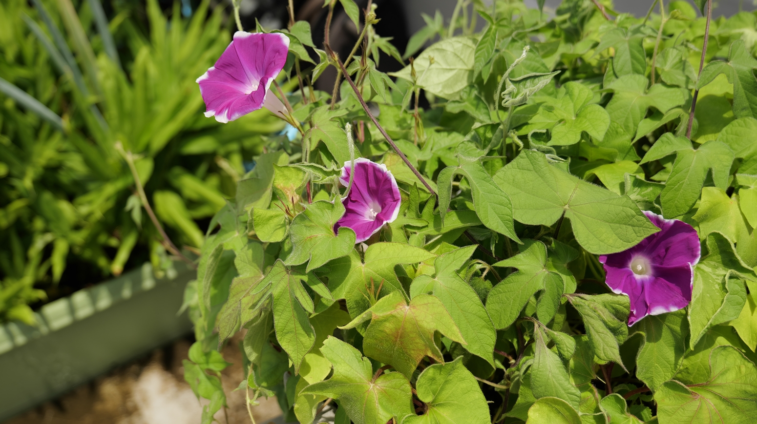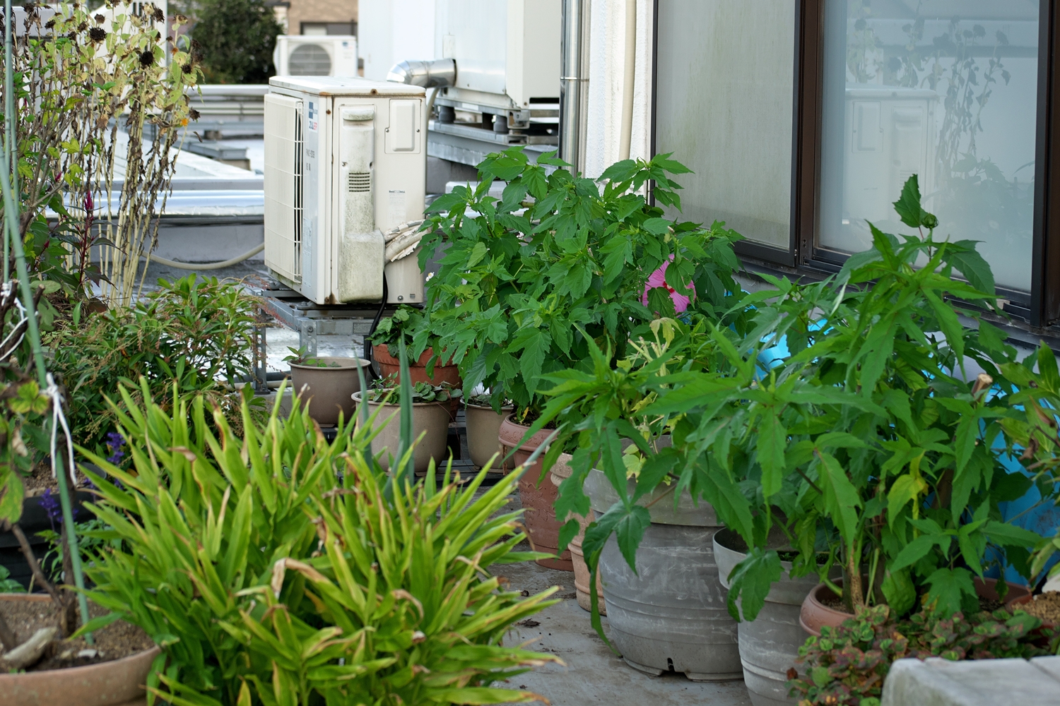職場ベランダですが、東西方向の建物に接した場所ですので、太陽光が直接当たるのはお昼前からです💦