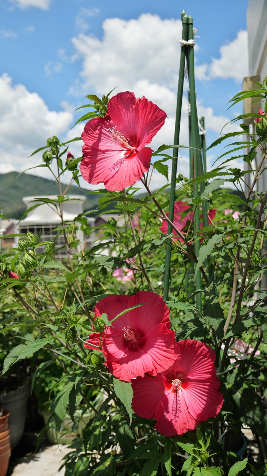 今年はタイタンビカスと同様、渇水対策として根元に厚めに腐葉土を敷き詰めましたが、それが奏功した様でして、次々と花を咲かせてくれました。