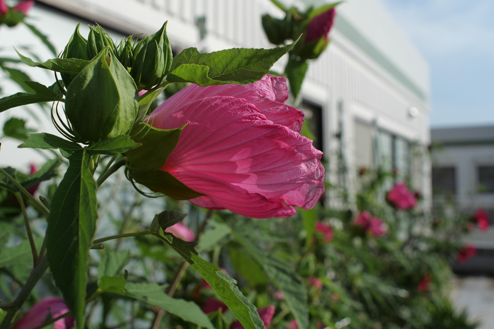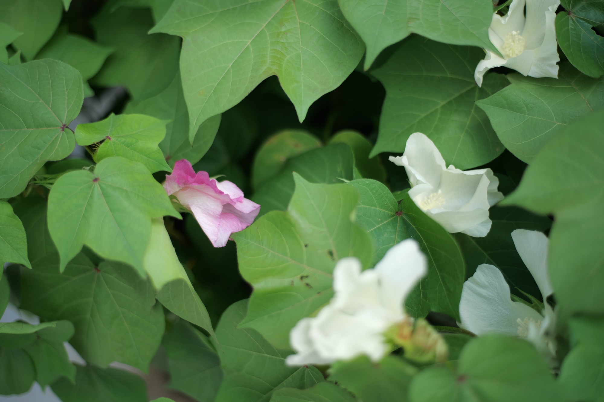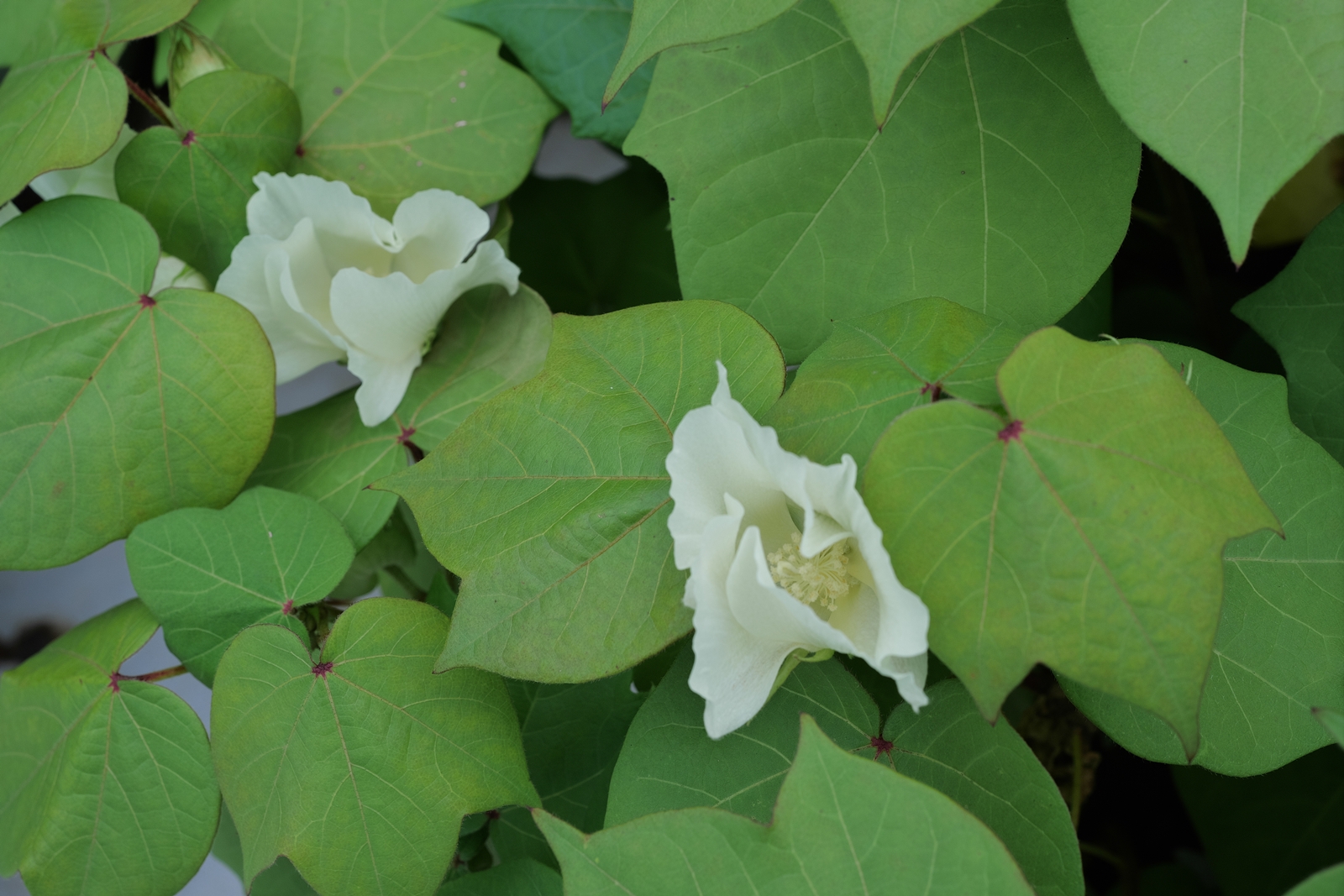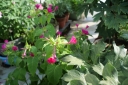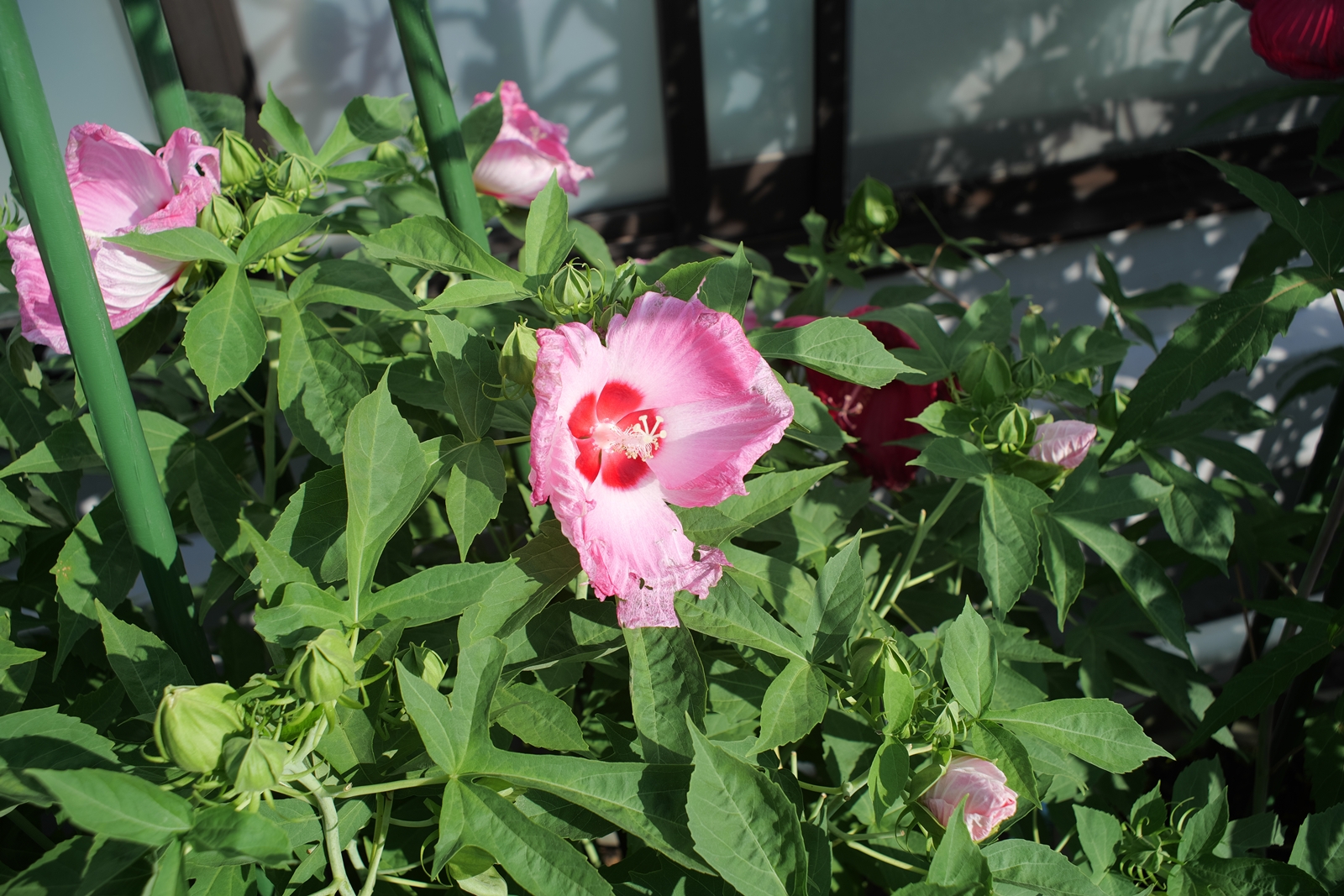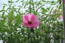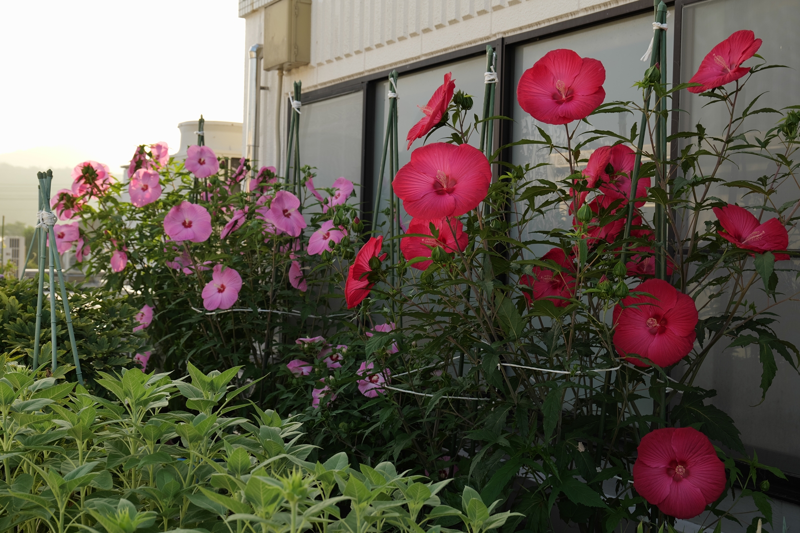 赤花と白花・・・・赤花の苗には、鮮やかな赤色のガクが少しずつ増えて来ています。白花の方は毎日、花が咲きますが半日の寿命ですね。💦
