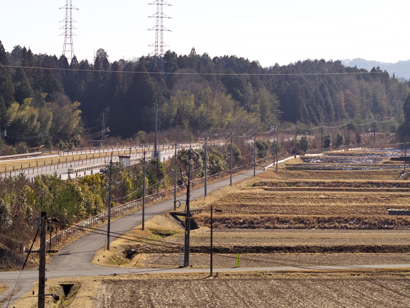 田んぼの畦道に入ろうと、アパート前の道を進みました。