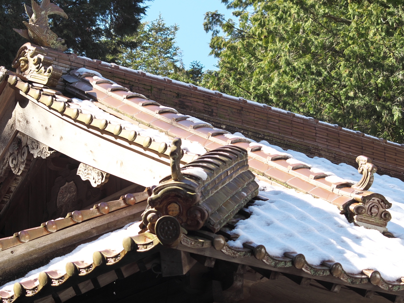 境内には、先日降った雪が解けずに残っており、軒先から解け落ちる水滴に要注意でした。