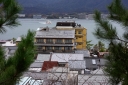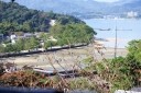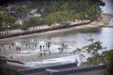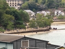 | 左向こうに見える砂浜ですが,ドンドン潮が満ちて参りましたですね | 向って左側から大聖院御室派(), 多宝塔(改修中), 聚景荘さまです | 要害山からは大聖院と五重塔とは隣り同士に見えますが,実際にはかなり離れています | |||||