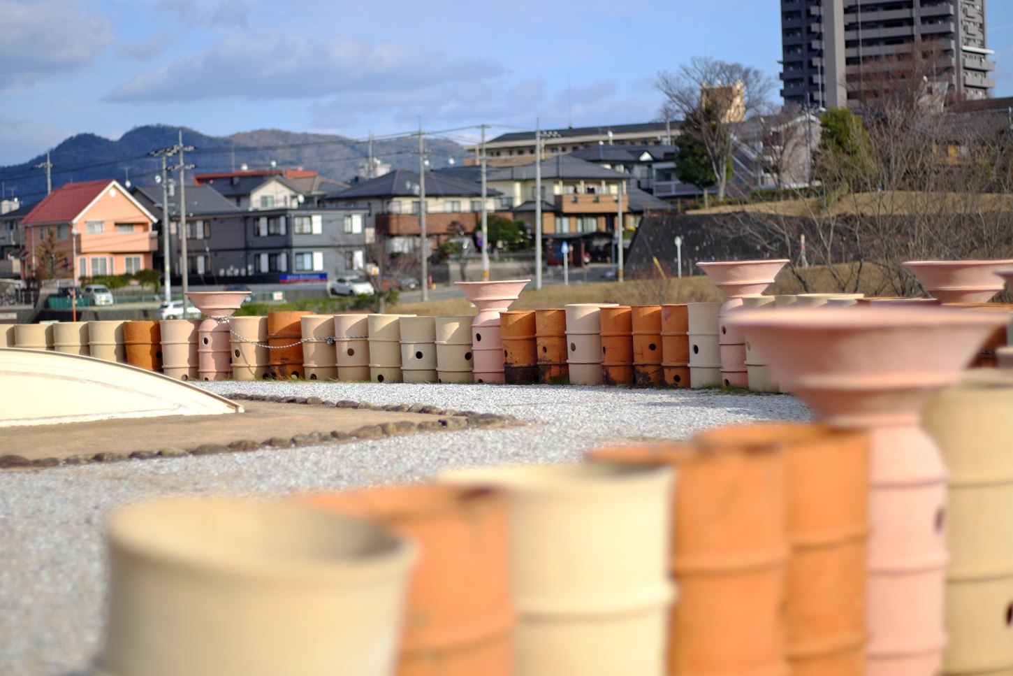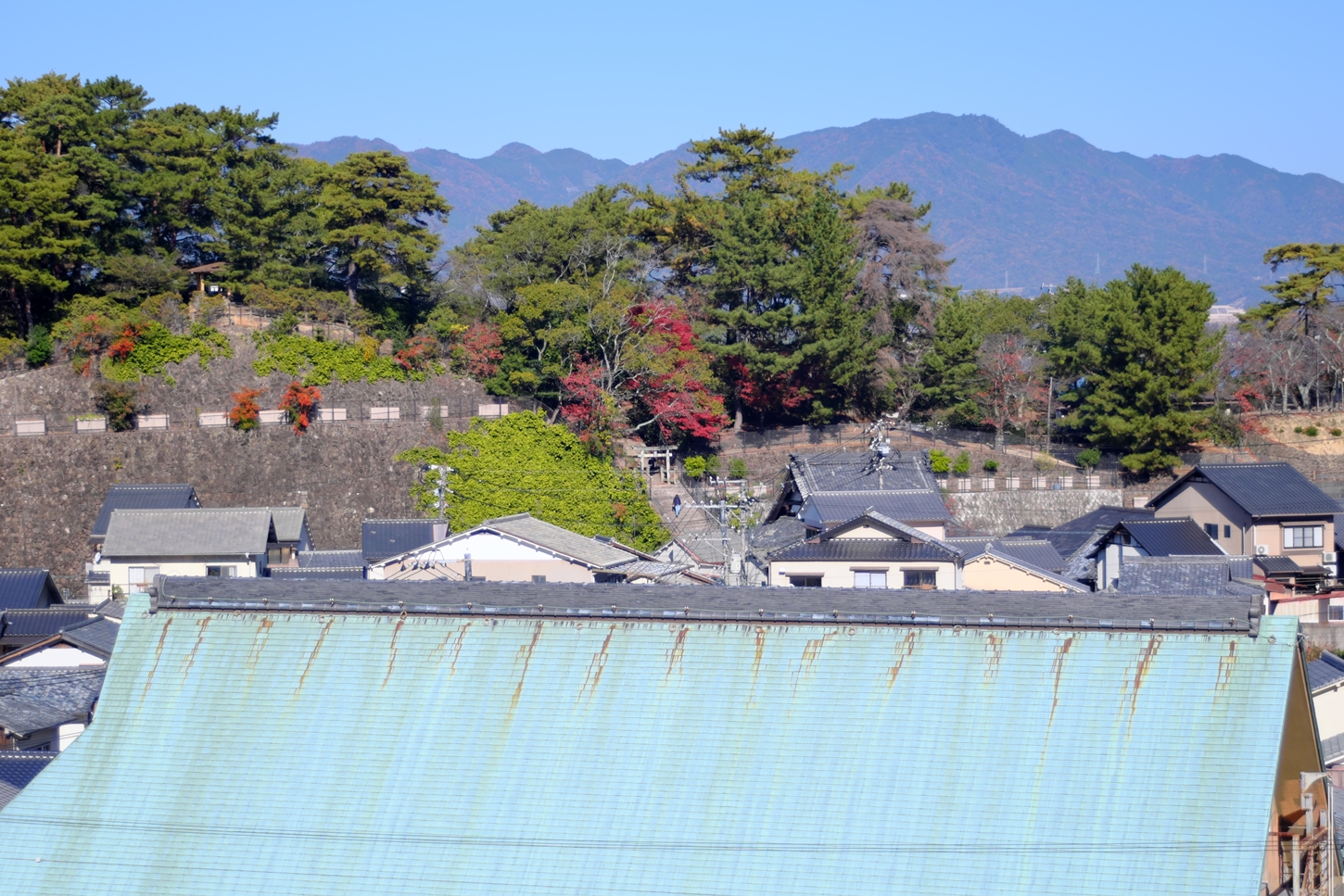| 要害山のこの眺望の素晴らしさ!これからもメンテナンス、宜しくお願い致します | 1週間前には色鮮やかな紅葉の落ち葉も、その寒さで変わり果てちゃいました。でもそれがいつもの移り変わりOK | ㊙展望台の上からと比して山辺の小径からの眺め。よりreal 感に満ち満ちていますね | ㊙展望台からの眺め、塔の丘、背後の山の色、海の輝き...1度として同じモノは有りません(*^^)v | ||