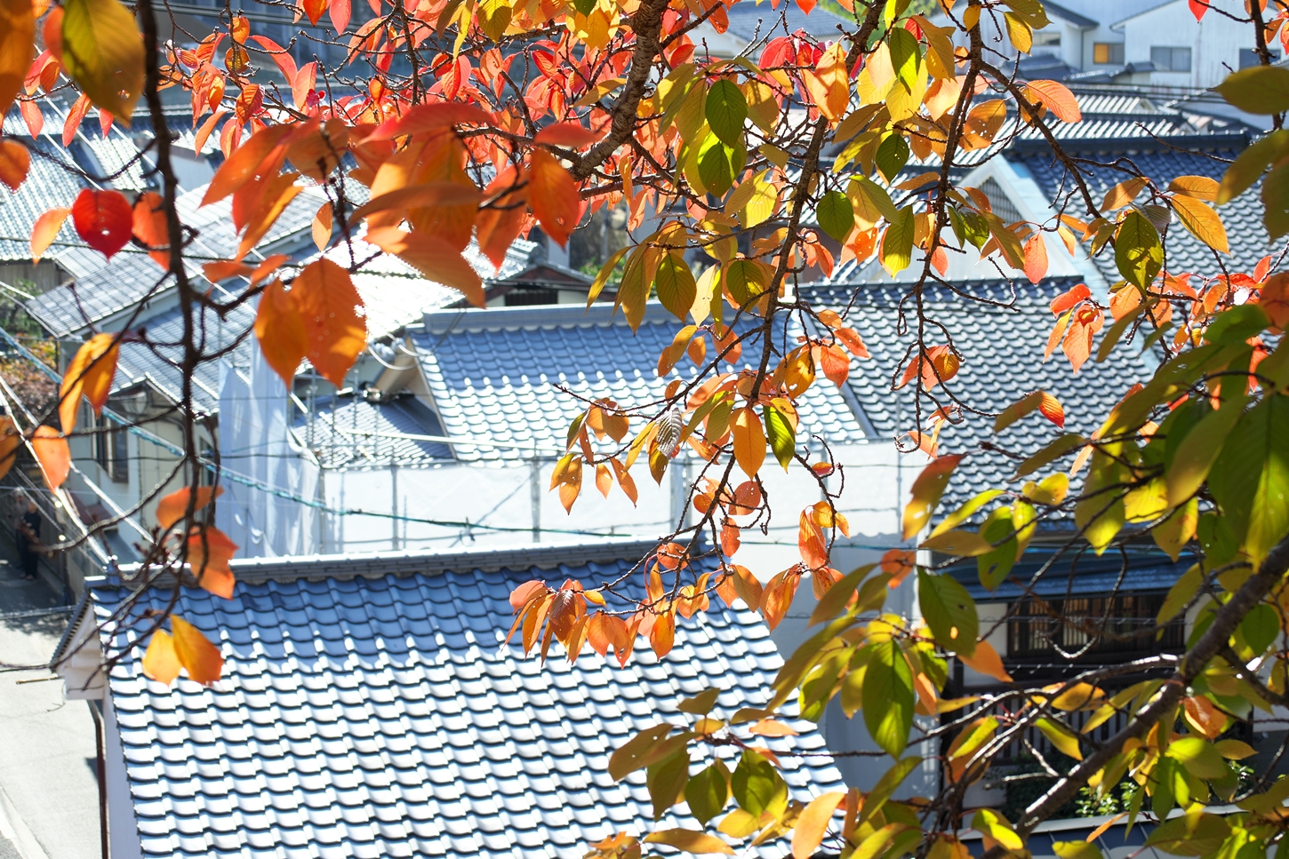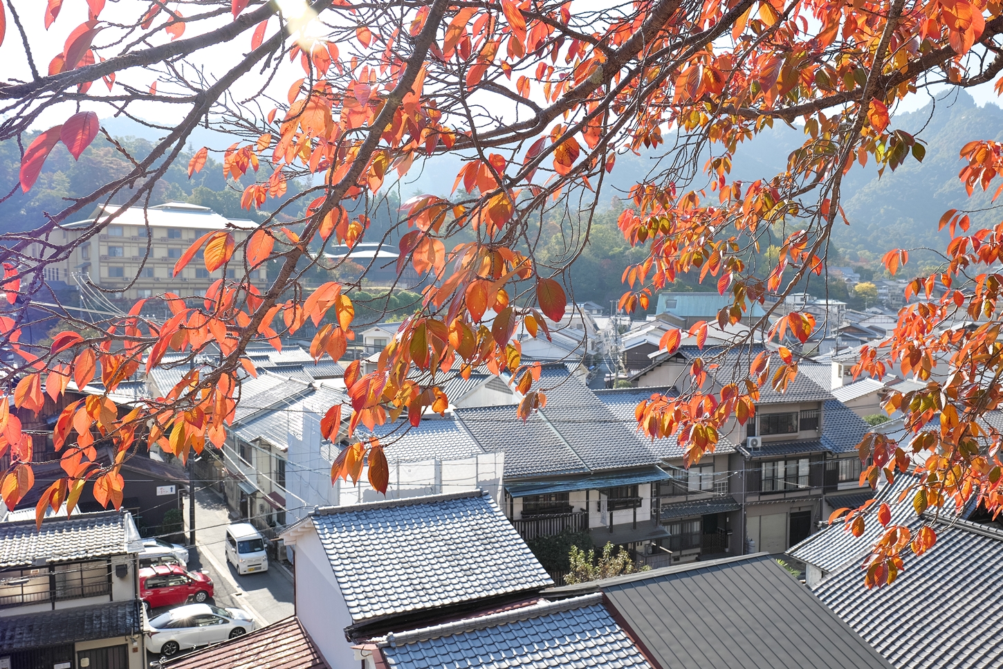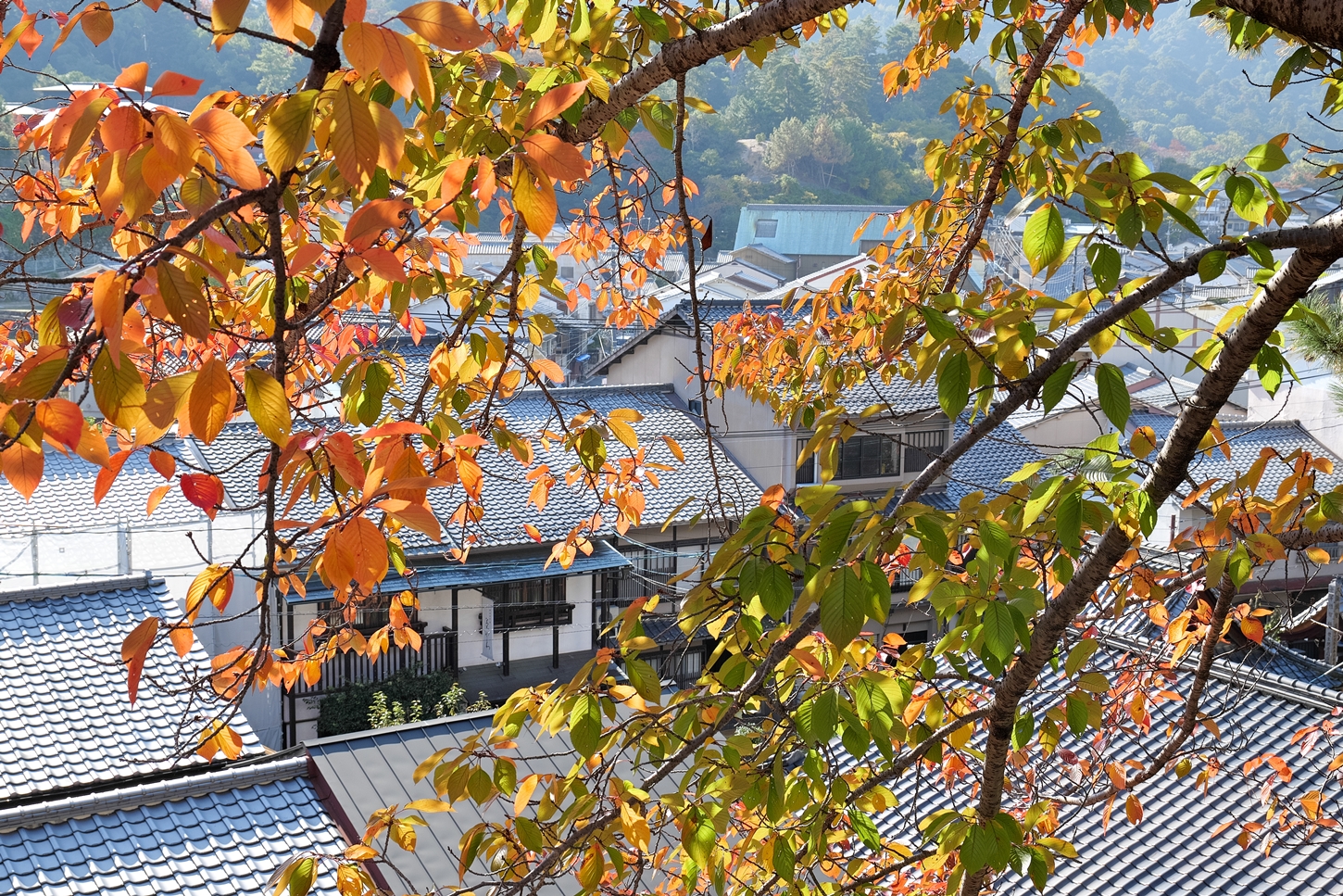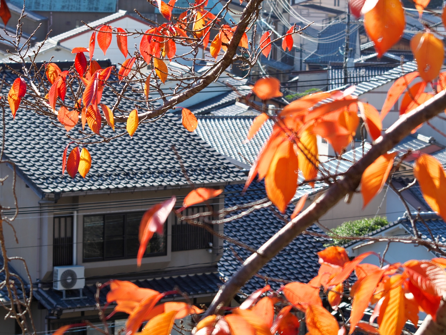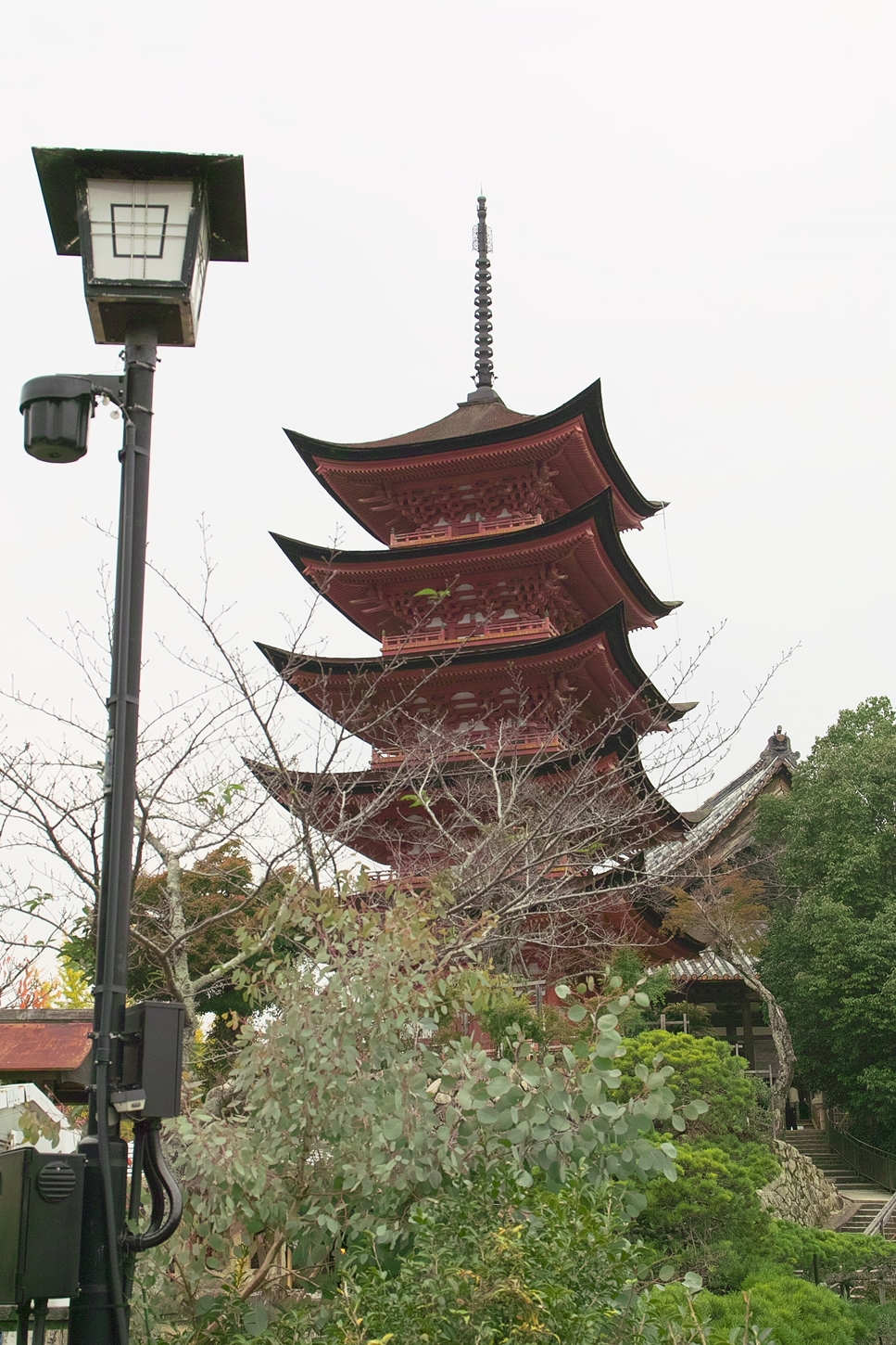 | これこそ今シーズン最後の紅葉でしょうかね・・・・ | 大好きな場所ですが、右手背後には多宝塔周囲に足場が組まれて大修理中です | 遠くに広島市西区井口台の団地の姿が | |||