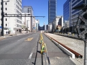 | 広島市内のmain streetでしょうか・・・ | 太田川の支流があちらこちらに | 川面を見てみましたが(意外にも)澄み通っていました | 突き当りが広島駅でして広島電鉄の新規路線部分です | 通行量が多い所でして深夜帯を利用して、ポイント部分&路盤の敷設が完成しました | |