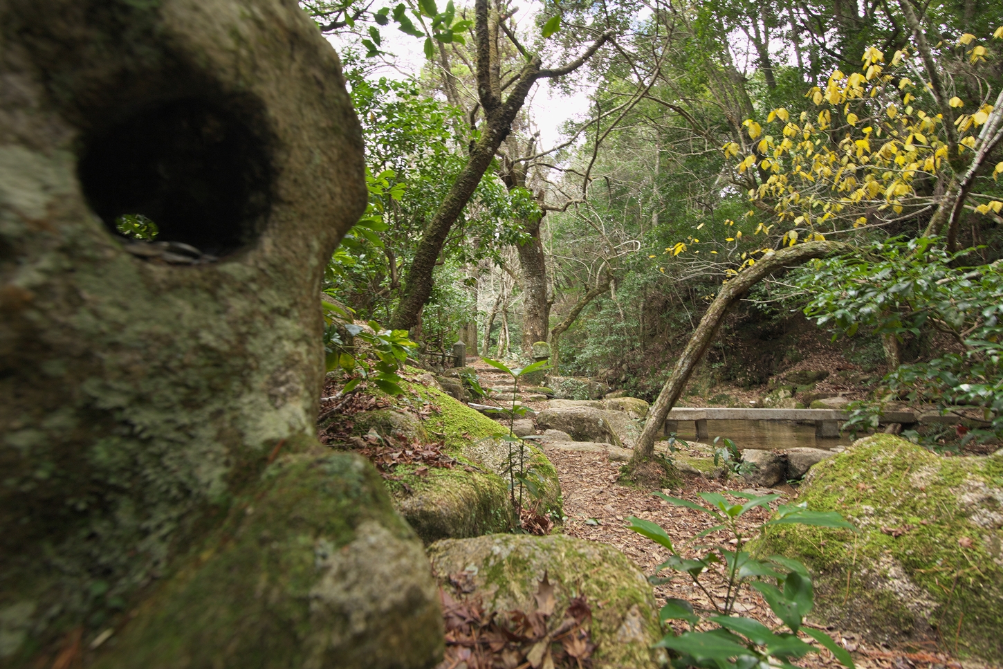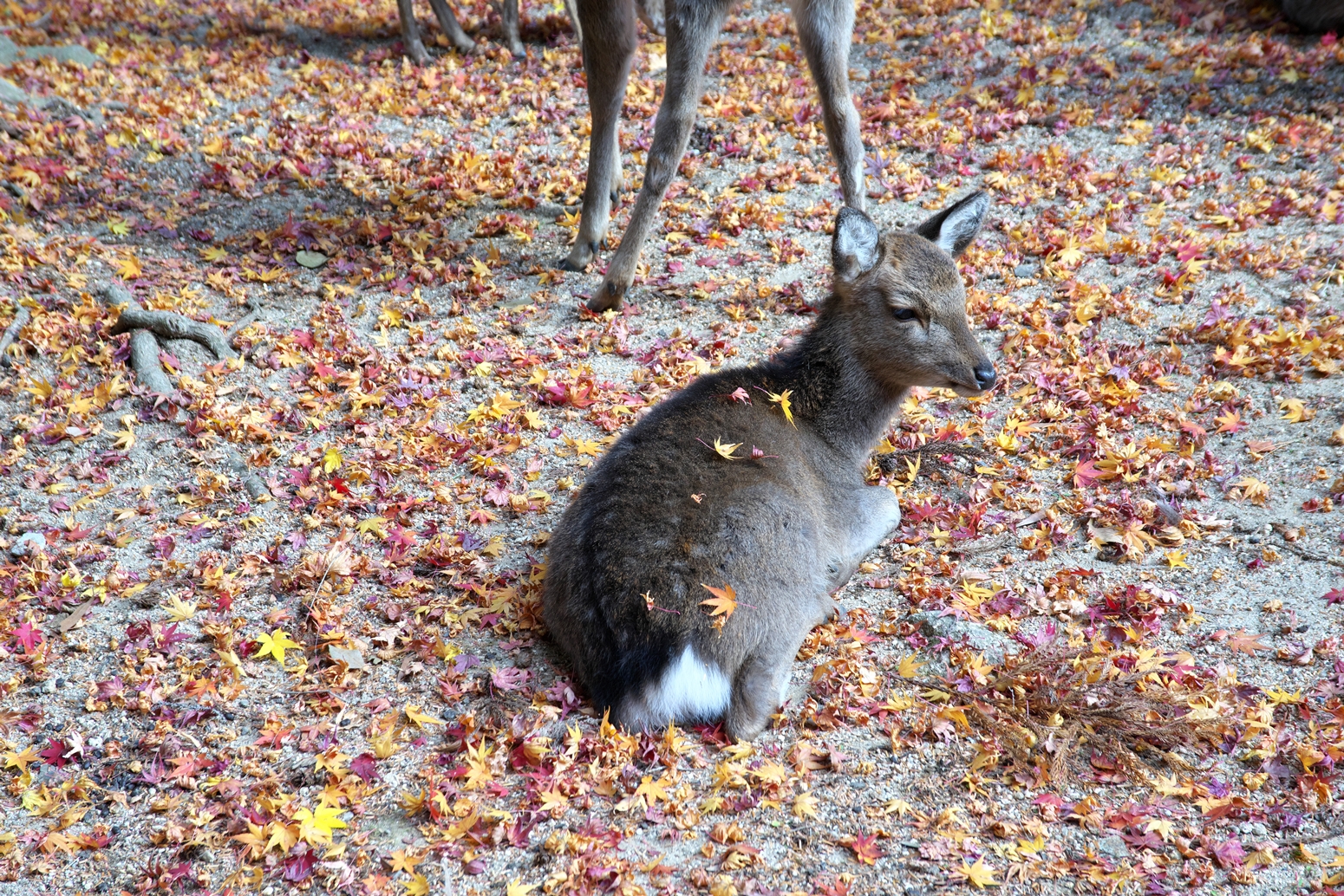 | あせび歩道に参りましたが鹿さん母子の姿を・・・ | 先週、来た時には鮮やかさが残っていた落ち葉ですが・・・ | ちょうど中潮の満潮です | 厳島神社さま、今日は時々霧雨が降るあいにくの空模様でした | ||