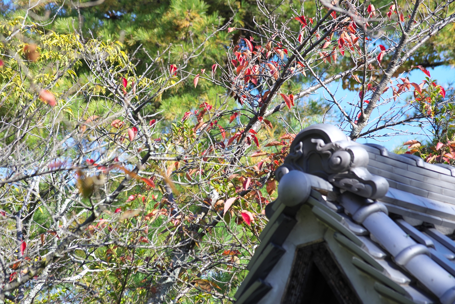 | F4.5のレンズで手振れの写真が沢山💦💦 | お天気が良くて海と空が美しい!五重塔左方のイチョウ、大分色付いて来ました | 要害山・・・桜の樹が沢山有りますが、紅葉がキレイです | |||