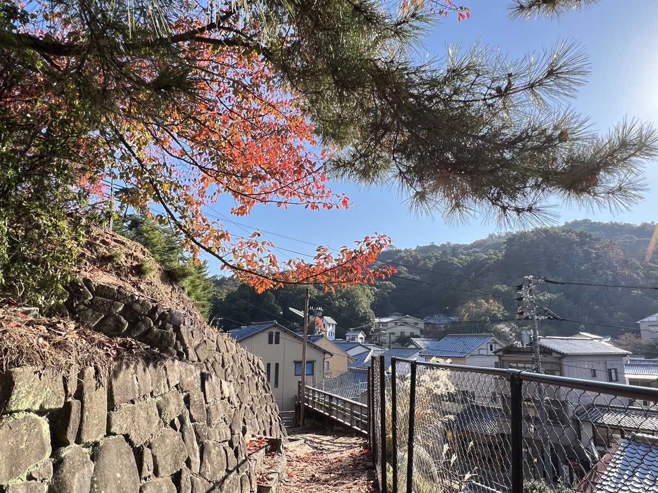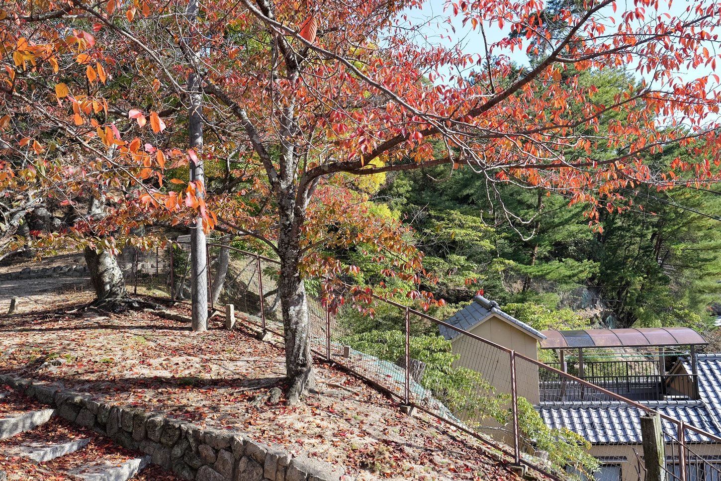 | 今伊勢神社さま、再訪を。今回は、また別のお供え物が。 | memorial stoneですが文字面の方を表に置き直されていました | これを置かれた方or同じ国からいらした方々が,これをご覧になる事が出来ますように! | 桜の葉っぱも、殆どが落葉してしまいました🍂 | 要害山のお気に入りの場所です | 要害山下の立派なお屋敷です。お隣の宿泊施設さまが管理なさっているそうですね |