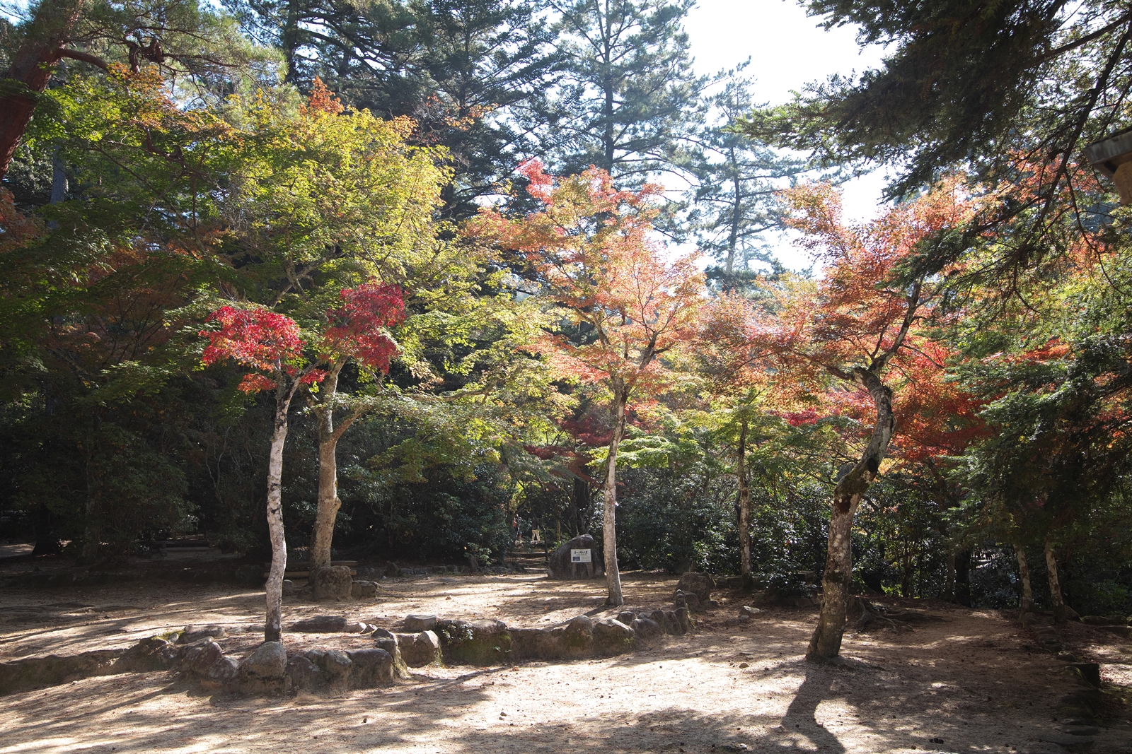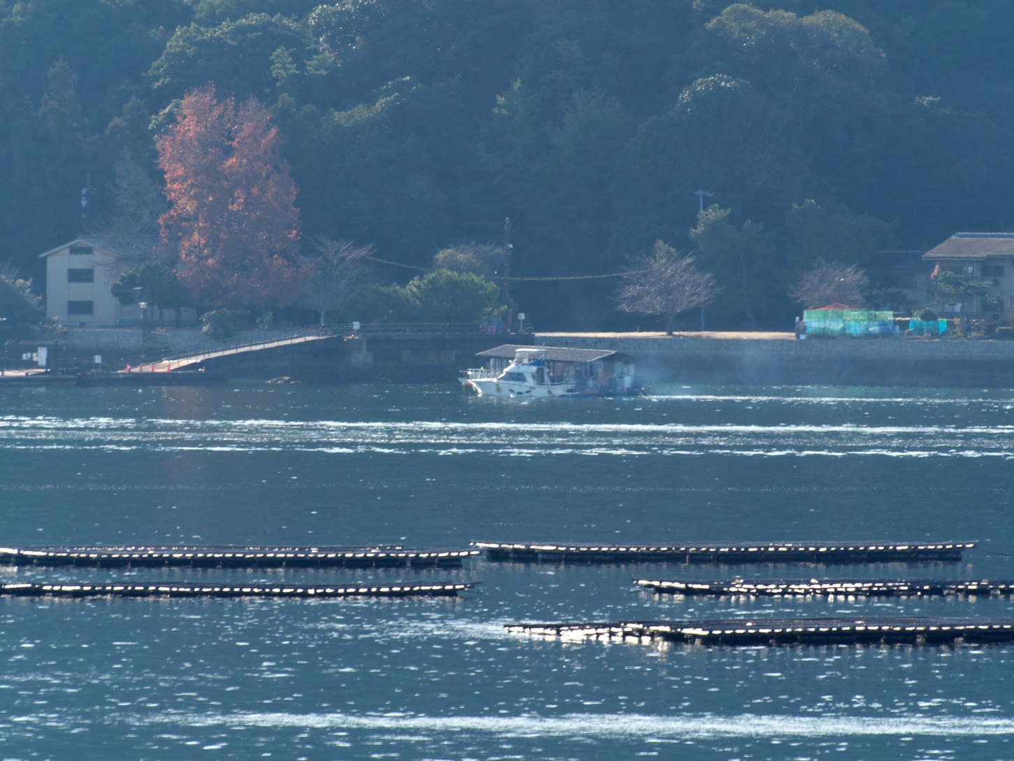 | あせび歩道の入口、木漏れ日が紅葉の落ち葉を浮き上がらせていました🍂 | 色鮮やかですね・・・(*^-^*) | 紅葉谷川・河口部です。満潮時には岸に係留されているボートがプカプカ。鹿さん達は海藻をお召し上がりに。塩味が効いてて美味かもね | 180度反転像です。左側の土手(西の松原)はこの川から流れて来た度重なる土石流、大量の木材を積み上げて作り上げたモノです。でも松林に覆われて落ち着いた雰囲気です | 紅葉は既に落葉してしまいましたが、こちらの大樹は今も美しいですね。フェリーからもハッキリと確認が出来ます | いつも事前に今日の潮目をcheck! 干潮の少し前頃に海岸へと向います |