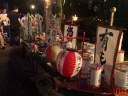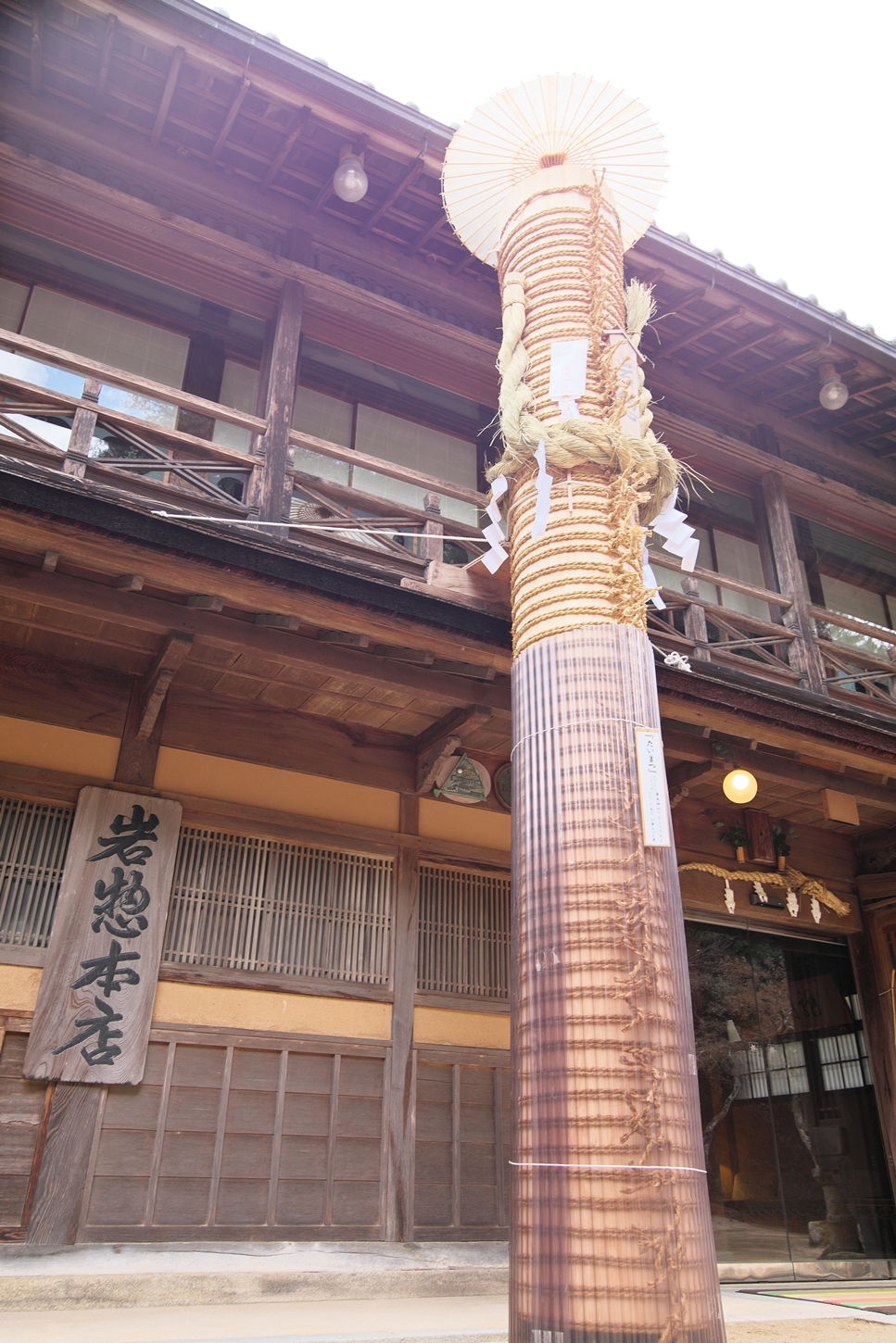 | 宮島彫り、轆轤(ろくろ)細工、ご立派ですね | 宮島踊りのお品でしょうか?とても貴重なモノではと | いつも賑わっている一画。海外からの皆さんにも好評ですよね | 町家通りのP。昨年の鎮火祭で使われたモノでしょうか? | 立派な大松明、底の部分は一体、どうなっているのかと? | かなりの大きさで重量も有りますので、しっかりと藁縄で締め上げられていました |