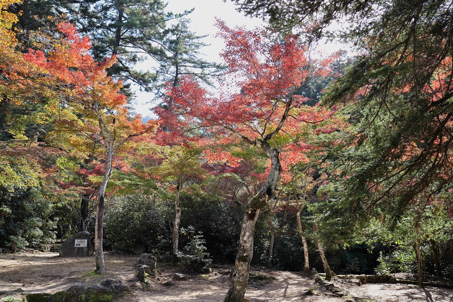 | EOS-RPフルサイズですがx1.6倍でクロップ撮影がOKです | あせび歩道に行く近道の途中・景色です | 多宝塔側ですが、多宝塔は現在修復中で、3年後に完成予定です | 紅葉谷川に・・・ | ||