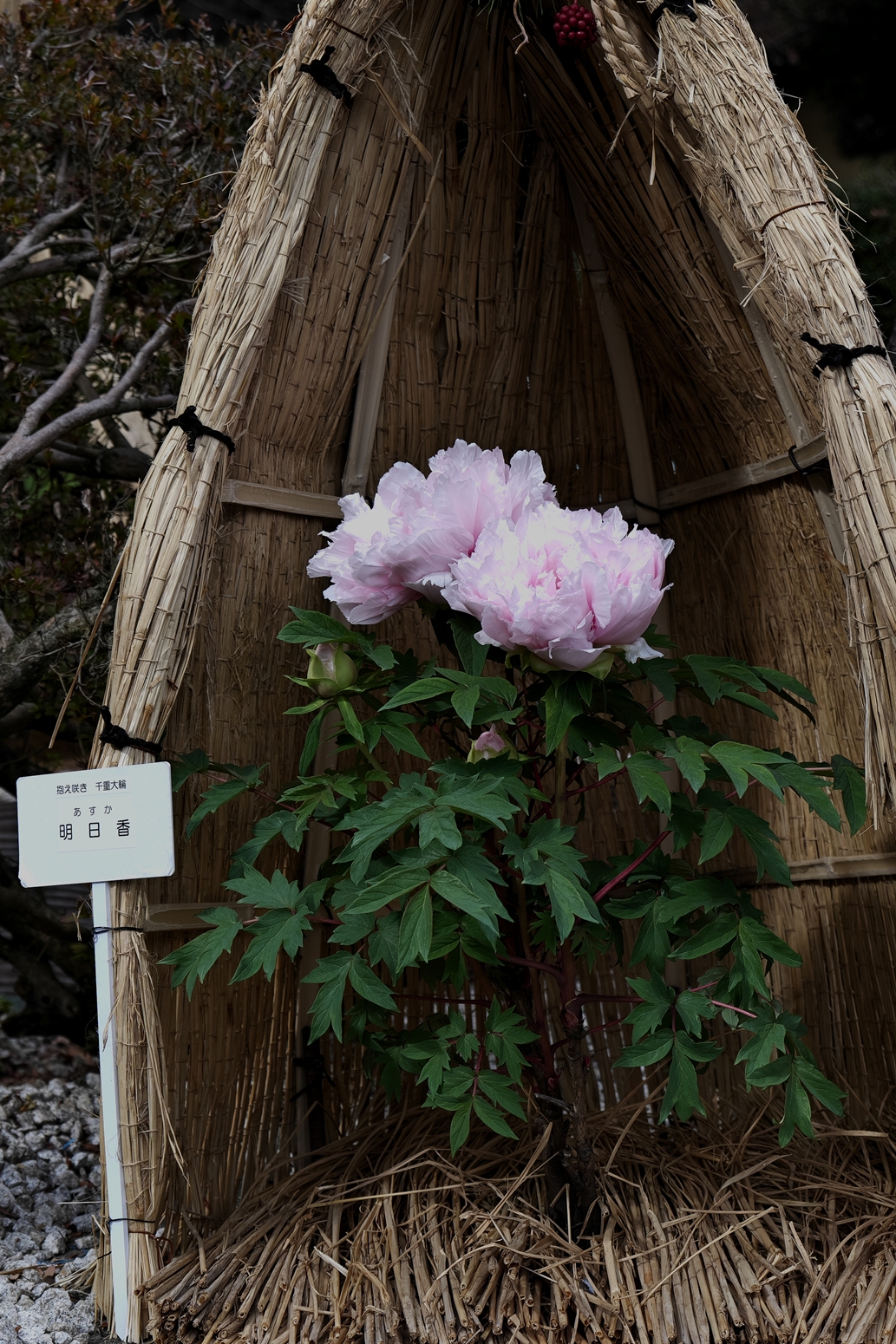 | 日当たりの良い場所のアセビ...一輪だけ開花していました\(^o^)/ | 大松明がスタンバイしていました. 観光客の皆さん、ご存じ無い方が大部分でしたが当たり前ですよね💦 | 31日の晩が待ち遠しいですよね(*^-^*) | こちらはご家庭用のミニサイズの松明. でも造りは手間が掛かり色々と工夫されているのですよ | 松明ですが、色々な方々が製作されています そんな中で伝統技術の継承を勧める岡田様がいらっしゃいます |