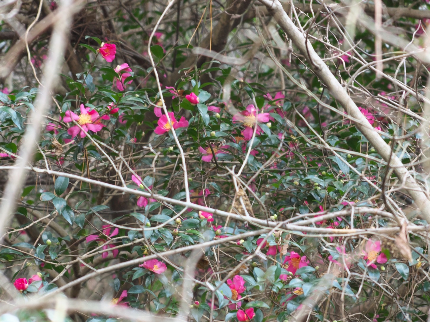 | 折り畳みイスに座って、この景色を眺めているだけで心休まる思いで満たされちゃいます | アセビのツボミが、少しずつ膨らんで来るのが楽しみです | ㊙展望台にもピンクのアセビの花の木々が有りますよね。ご存知の方々もお出でかと | うぐいす歩道脇のヤブツバキでしょうか?次第に花数が増えて参りますね | いつもの鹿さん一団、角をcutされたのは前ボス鹿さんなのでしょうかね? | |