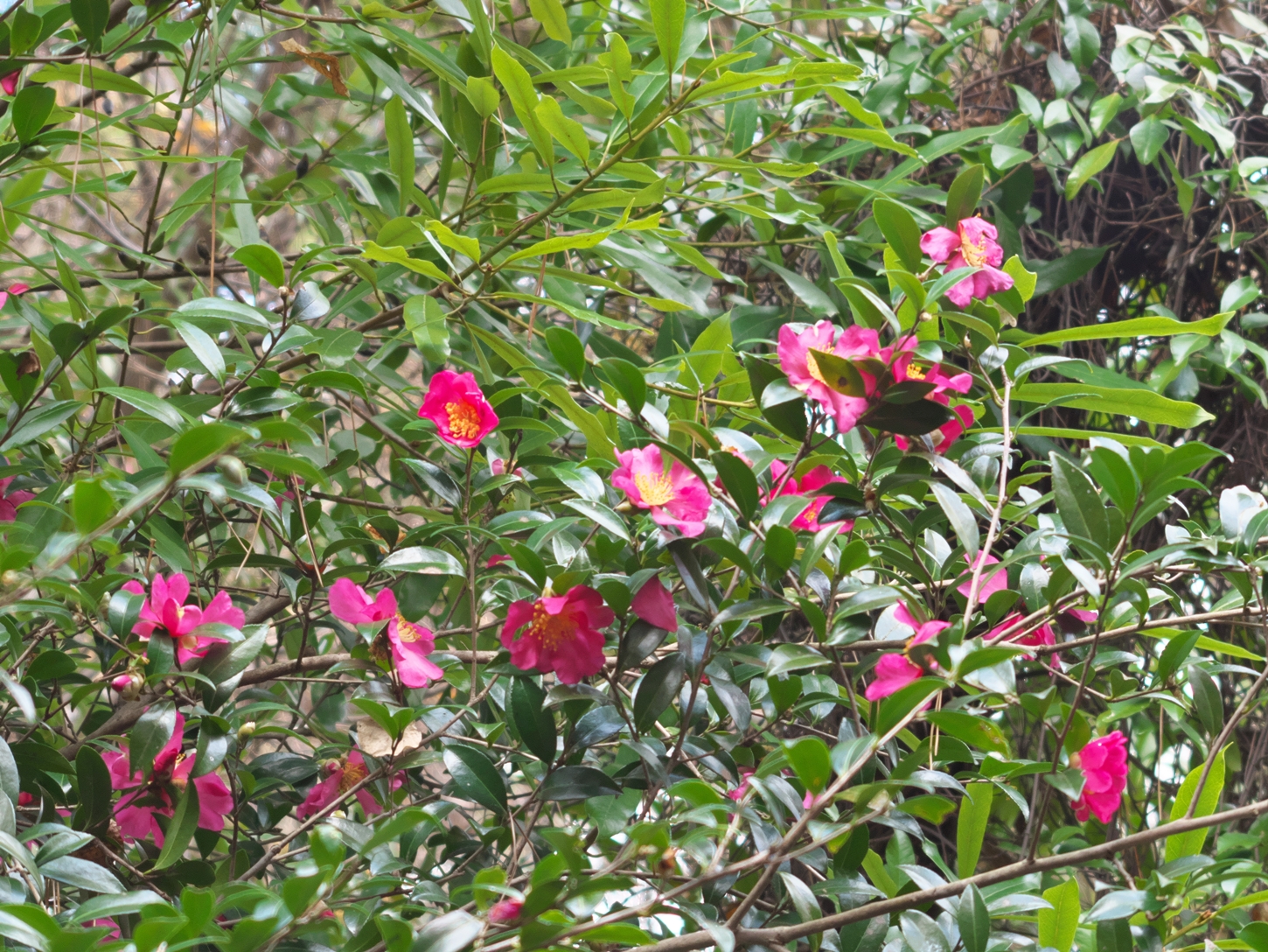 | 左奥の立派な角をお持ちは現ボス鹿さま・・・・? | 神泉寺跡入口脇のアセビ、白花の開花ですね | 北風がブロックされ&日当たりの良い当地、アセビの花が美しいですね | 桜の樹、葉っぱが無くなり見通しが良くなりましたね。でもちょっとだけ寂しさが | 立派な紅葉も先週が見納めとなりましたね。でもまた来シーズンが楽しみです | |