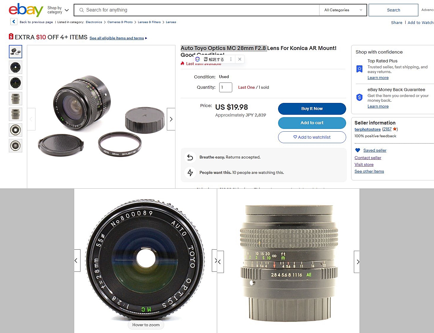 謎のレンズ:Toyo Optics 発見! in eBay.