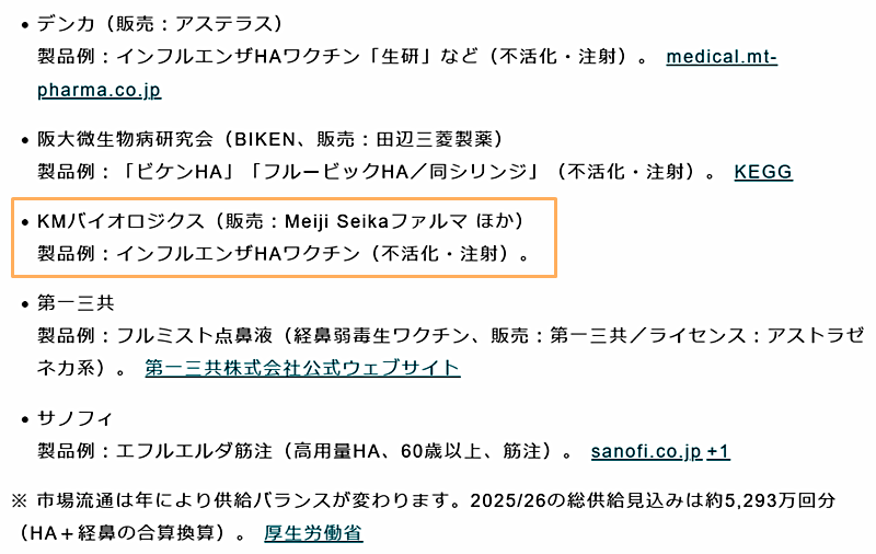 ちなみに同ワクチンには下記の種類がございますが、どの薬剤も信頼性の高いモノではと存じます。数年前に登場したフルミスト点鼻薬は特に小児科で効果を発揮されているそうです。
